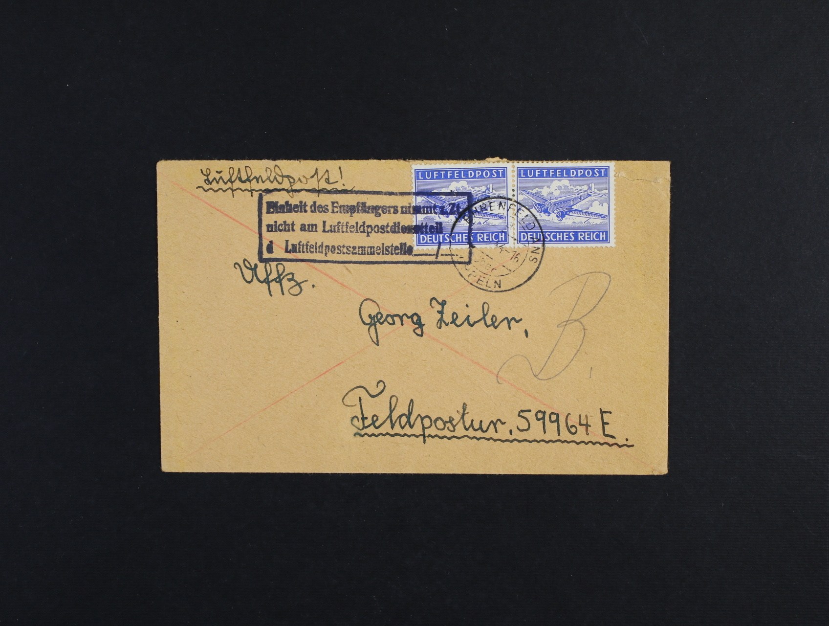 dopis na FP č. 59964 E frank. dvoupáskou zn. FP č. 1 A ve vodorovné dvoupásce, pod. raz. EHRENFELD ANS OPPELN + rámeč. raz.