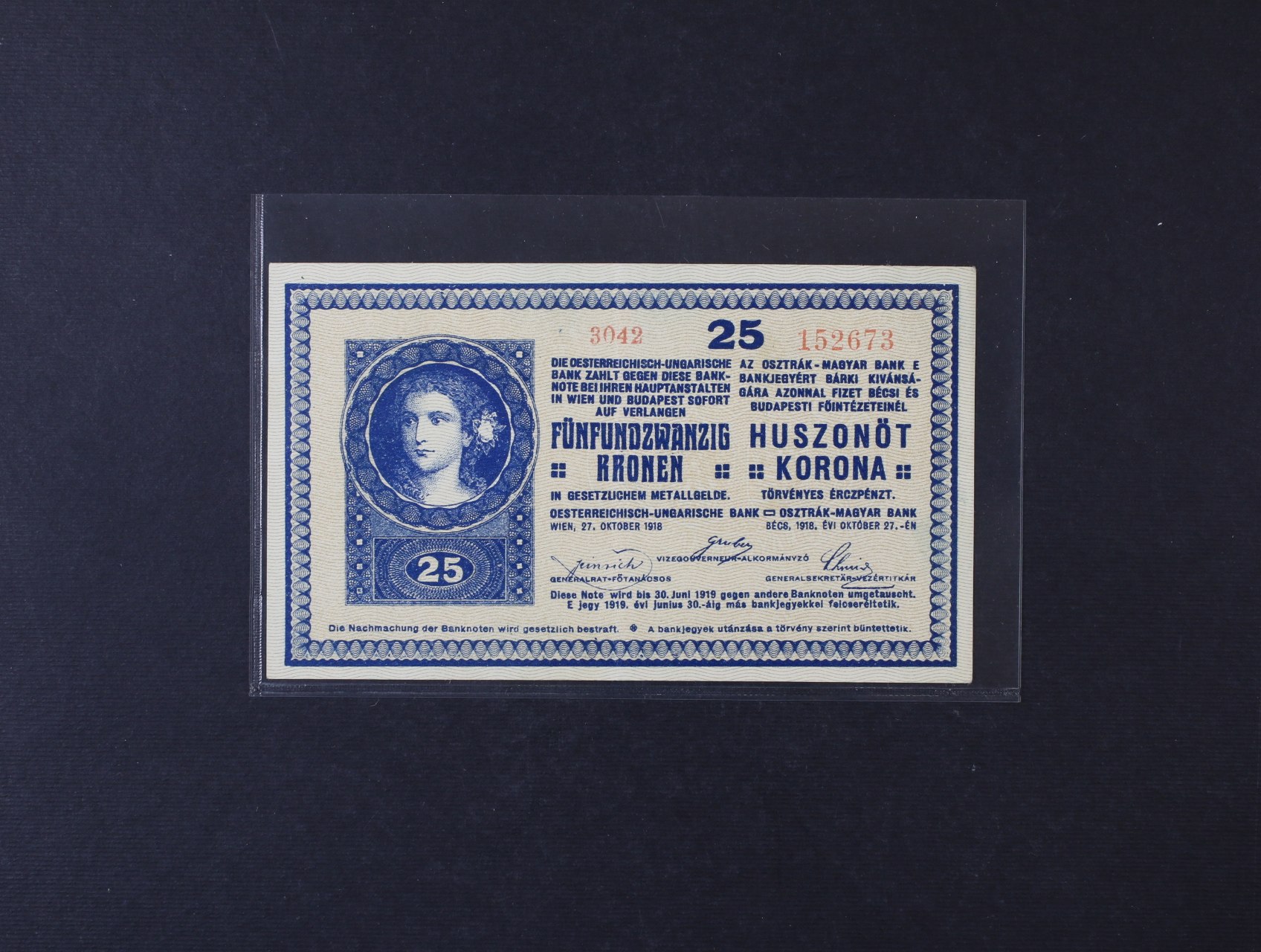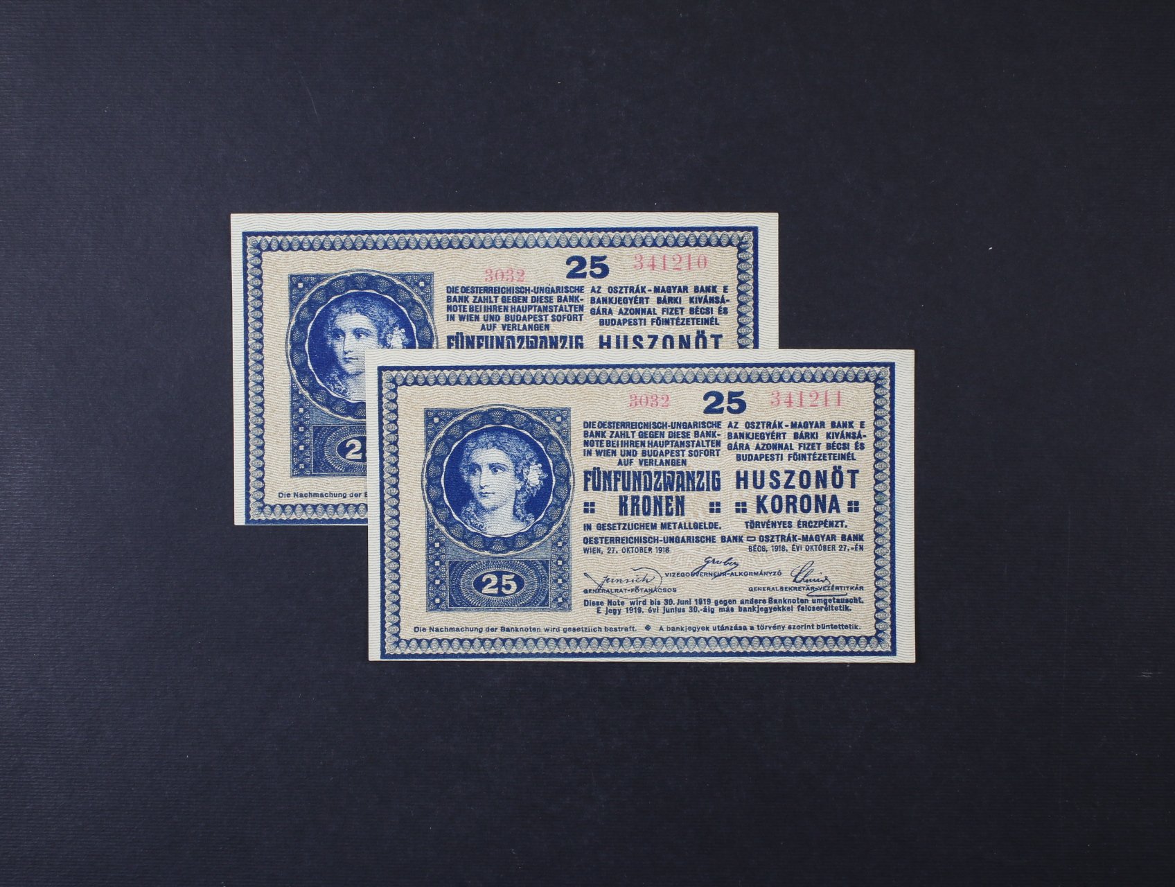 25 K 27.10.1918 série 1136, sériové číslo 1 s patkou, Ri. 170, Pi. 23
