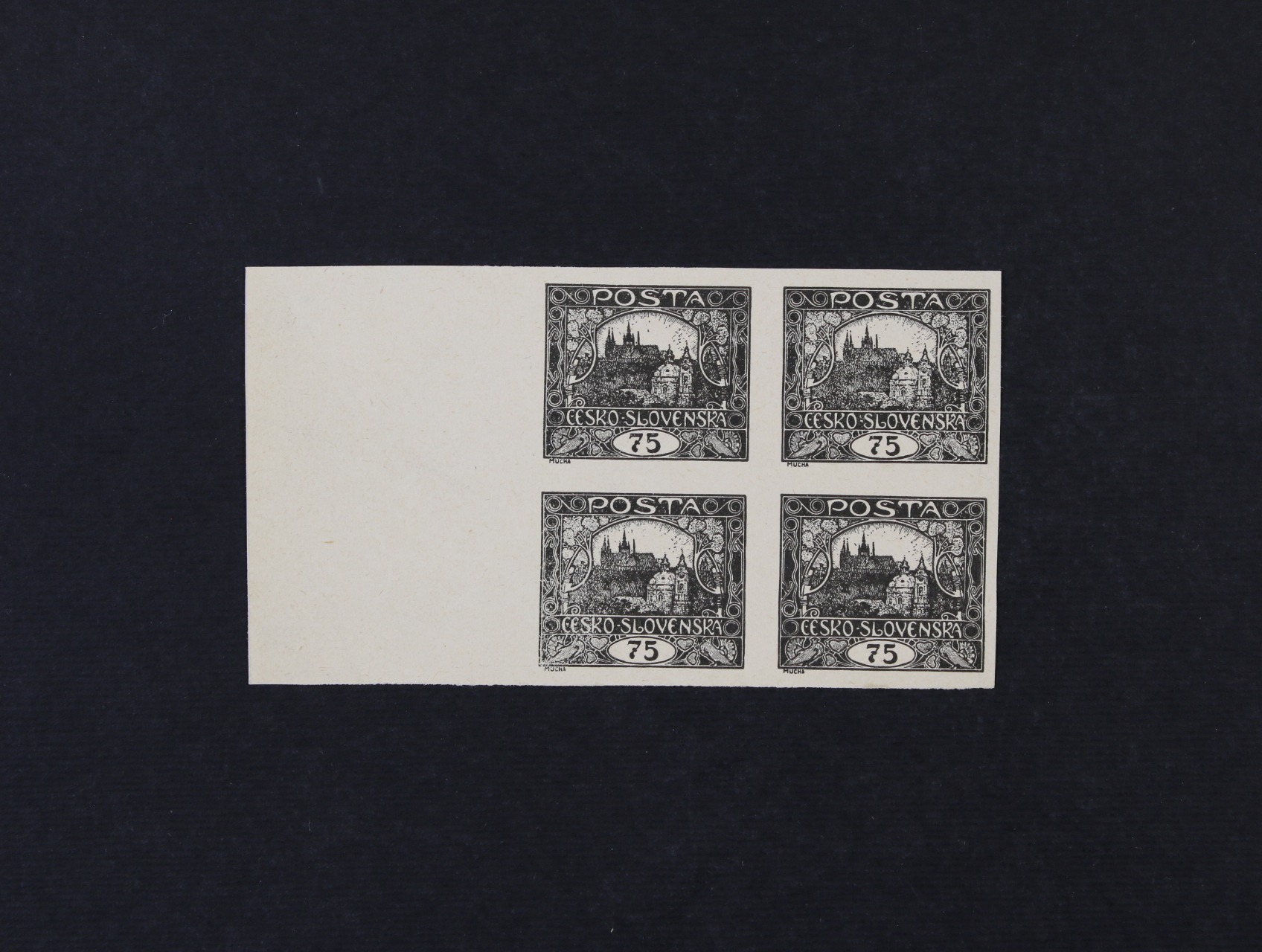 ZT zn. č. 18 75h ve čtyřbloku s levým okrajem v černé barvě, zk. Vrba