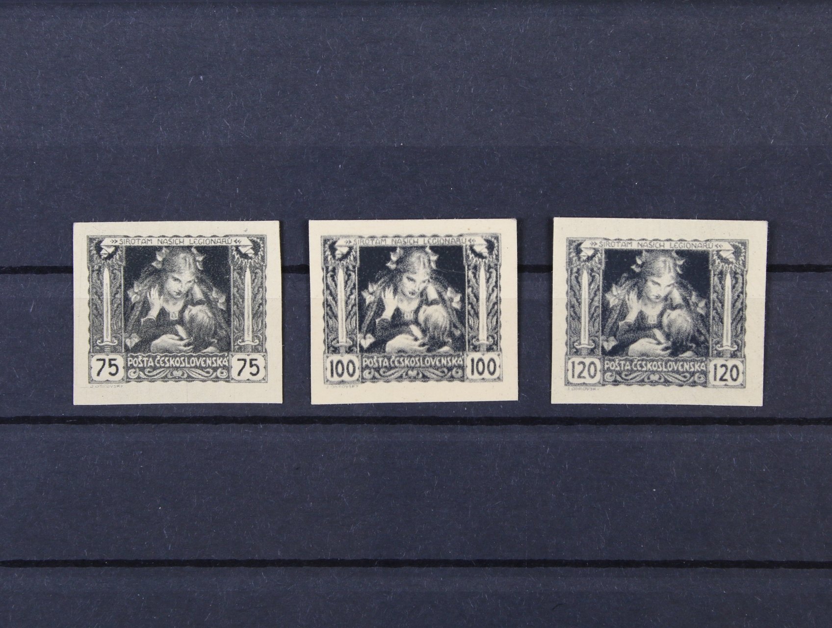 ZT zn. č. 27 - 29 ve vodorovných dvoupáskách v černé barvě na kříd. papíře, kat. cena 1500 Kč