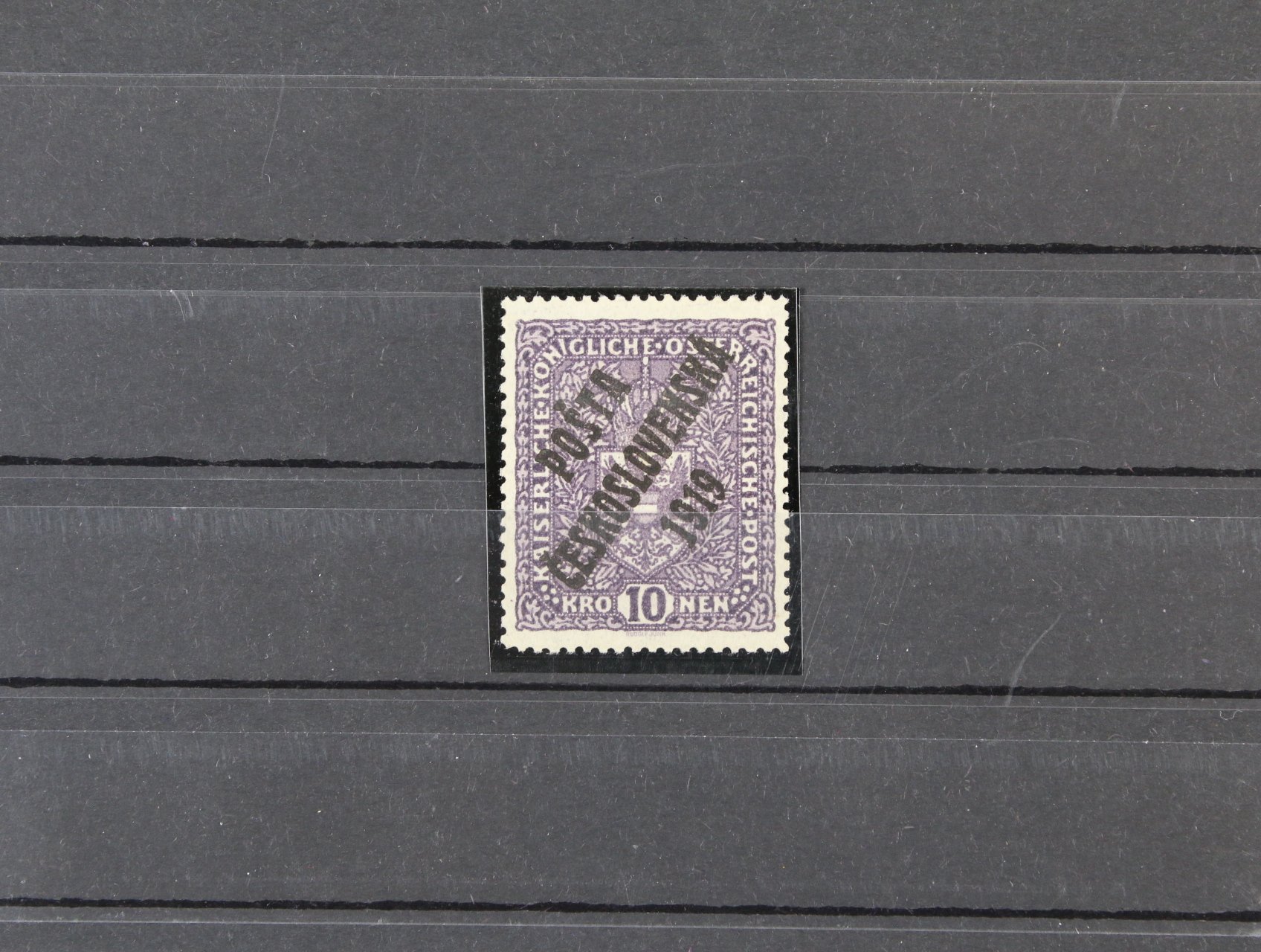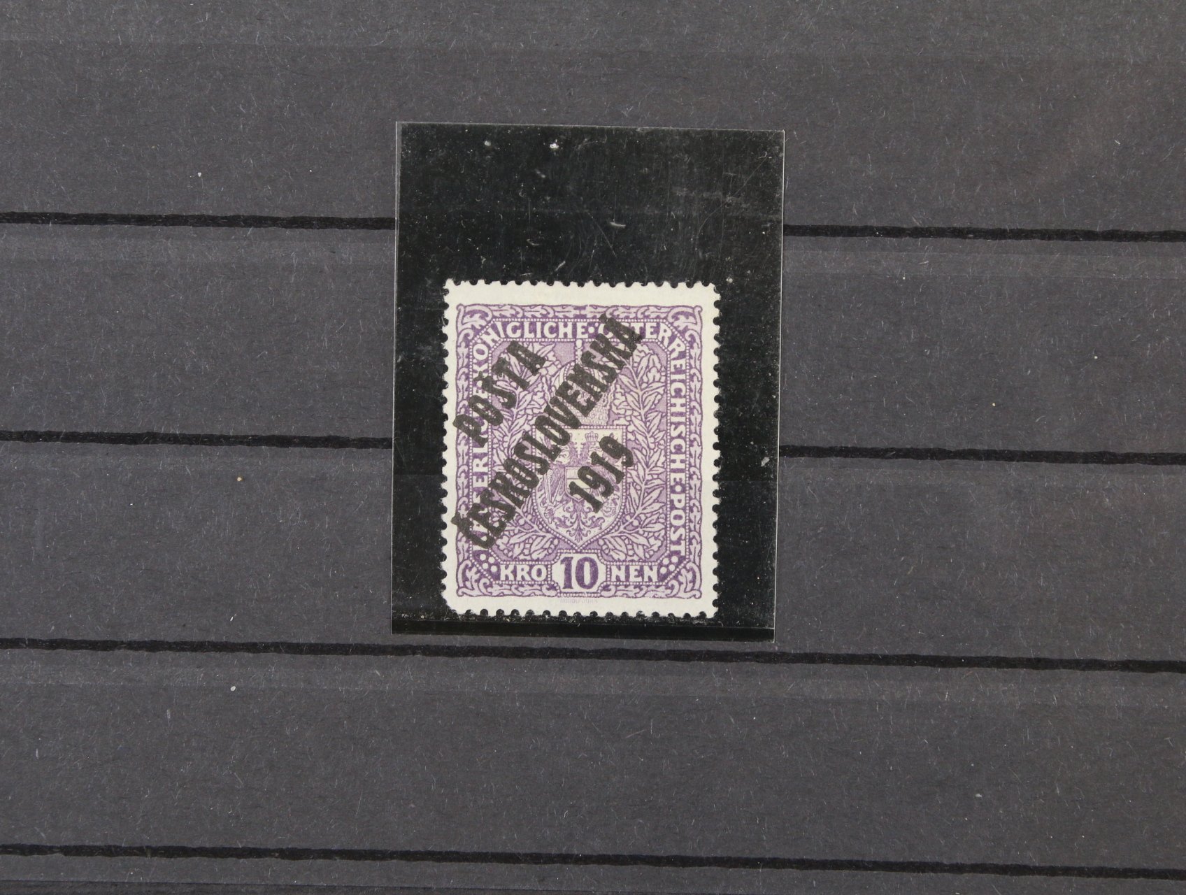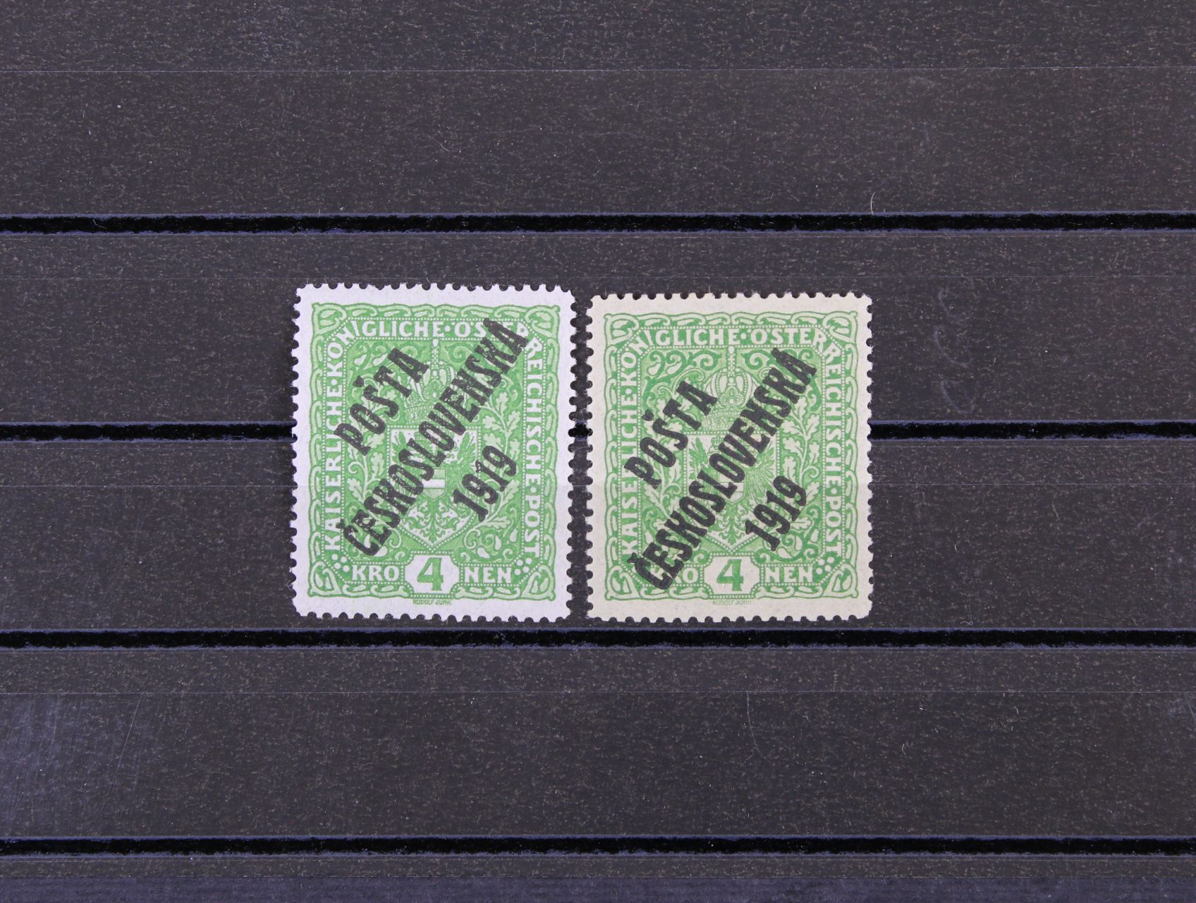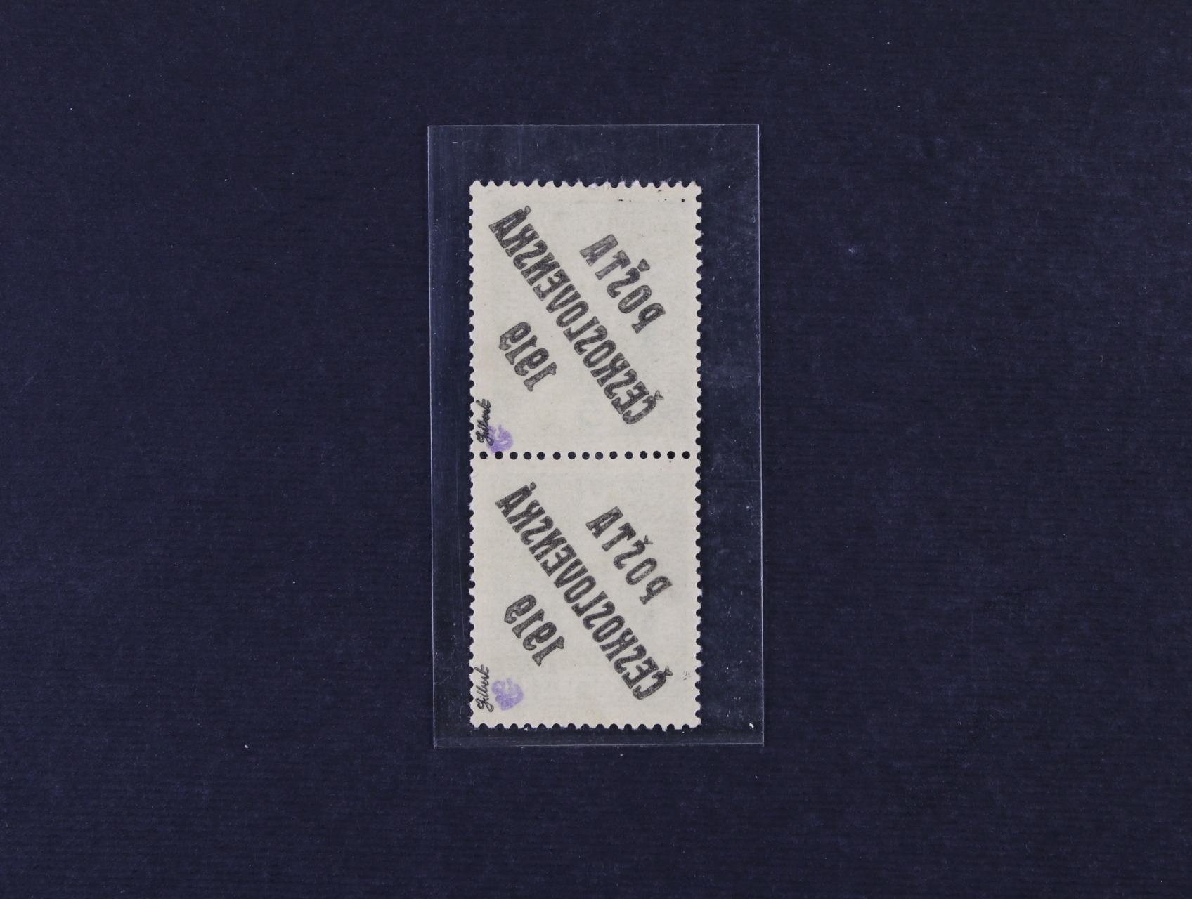 zn. č. 45 s přeložkou v pravém horním rohu a nedotiskem v ČESKOSLOVEN..., zk. Beneš