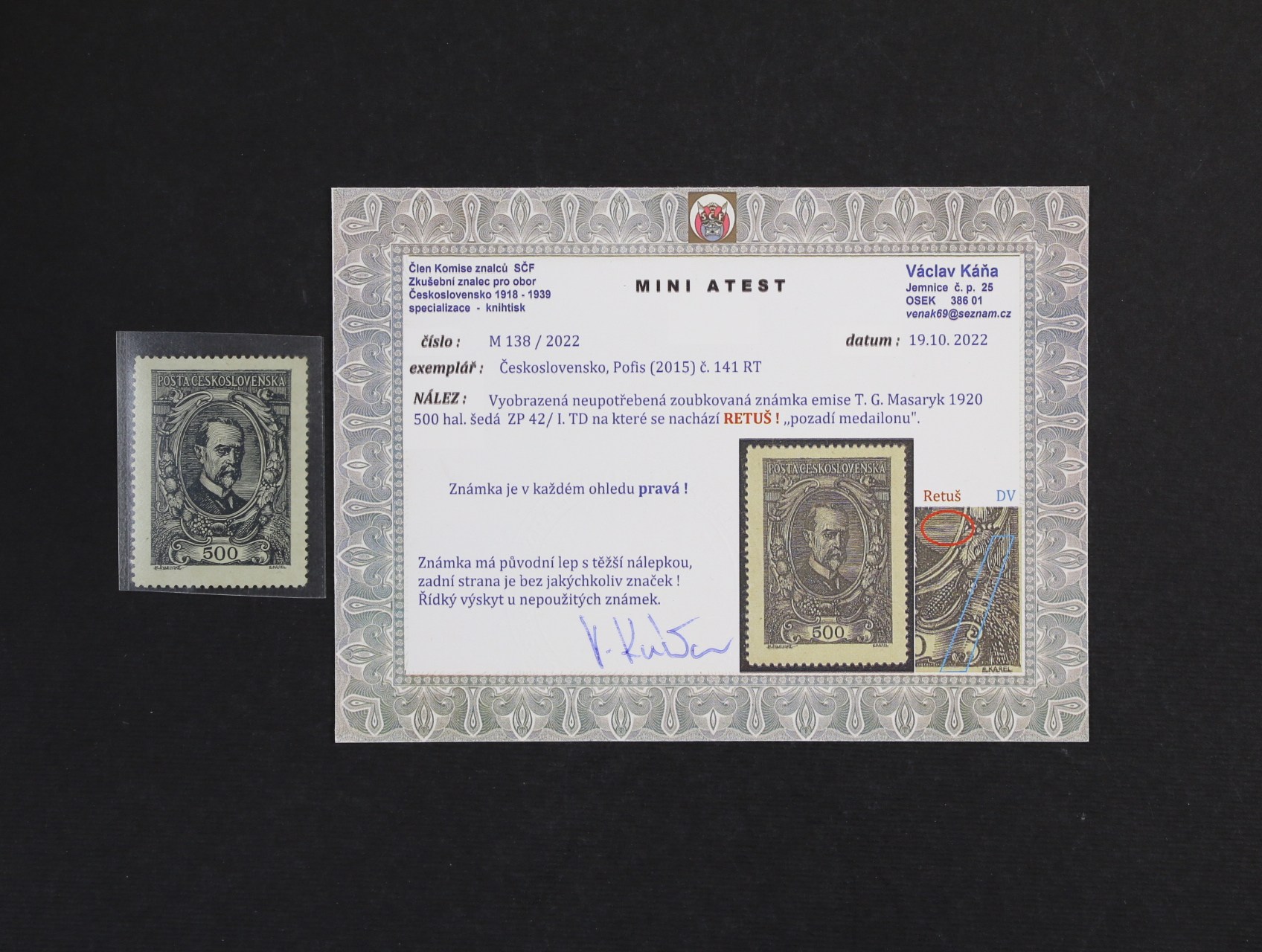 zn. č. 141 RP - retuš pozadí před obličejem, atest Káňa