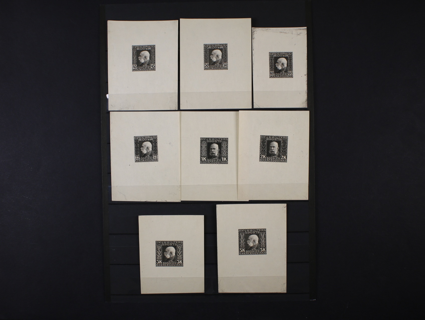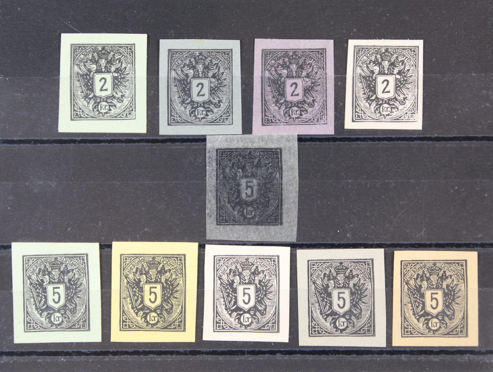 sestava 10 ks nátisků "Andrucke" ZT zn. 2kr a 5kr dvouhlavá orlice z r. 1883 na různých papírech v černé barvě