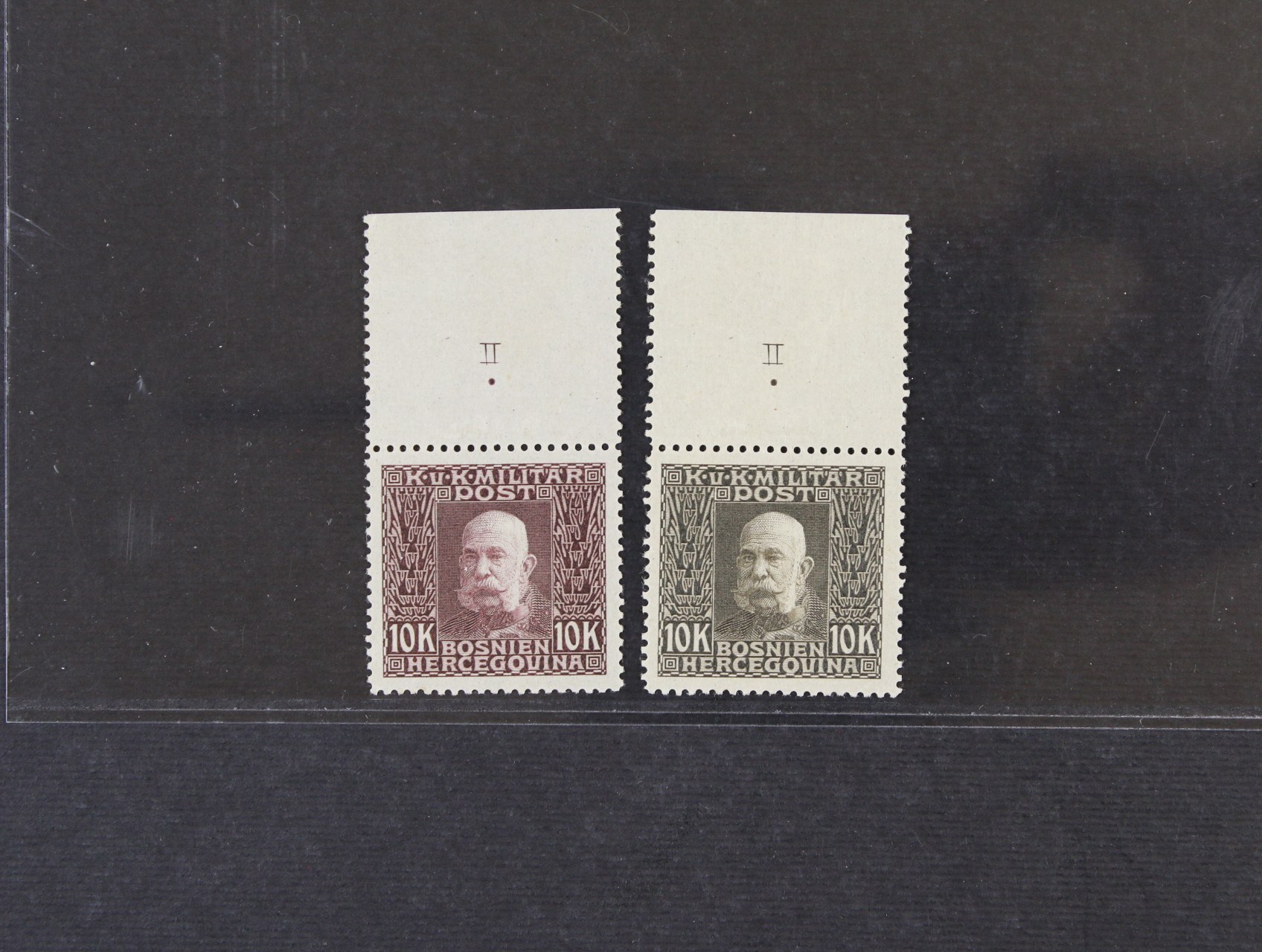 ZT zn. ANK. č. 84, 2x FJ I. 10K v barvě „graubraun, braunlichlila“ s DČ II.; bezvadné, vydáno bez lepu, s DČ velmi vzácné, kat. cca 1.600 EUR