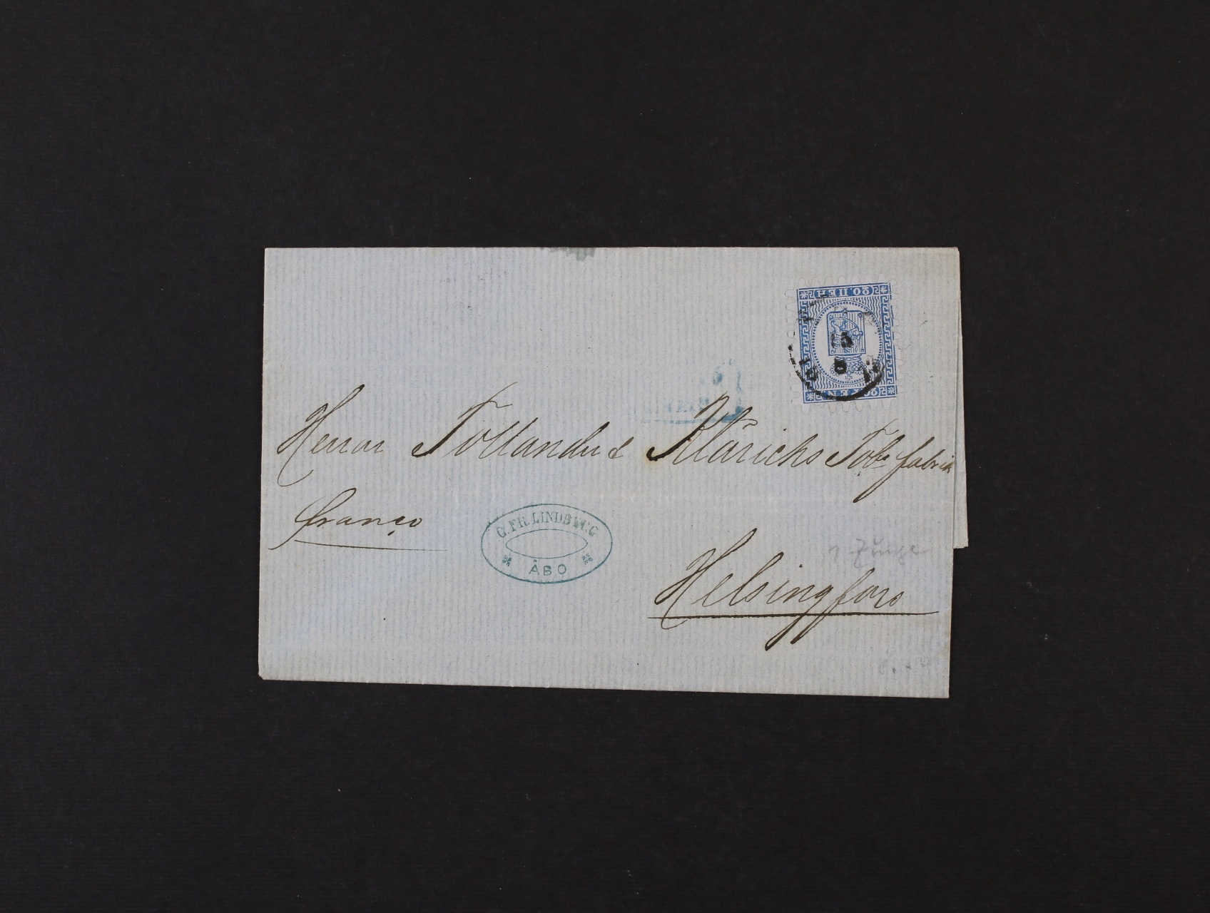 skl. firemní dopis z Abo do Helsink frank. známkou Znak 20 Pen modrá, perforace A, kompletní perforace, kat. Facit 1000 EUR, bezvadná kvalita,