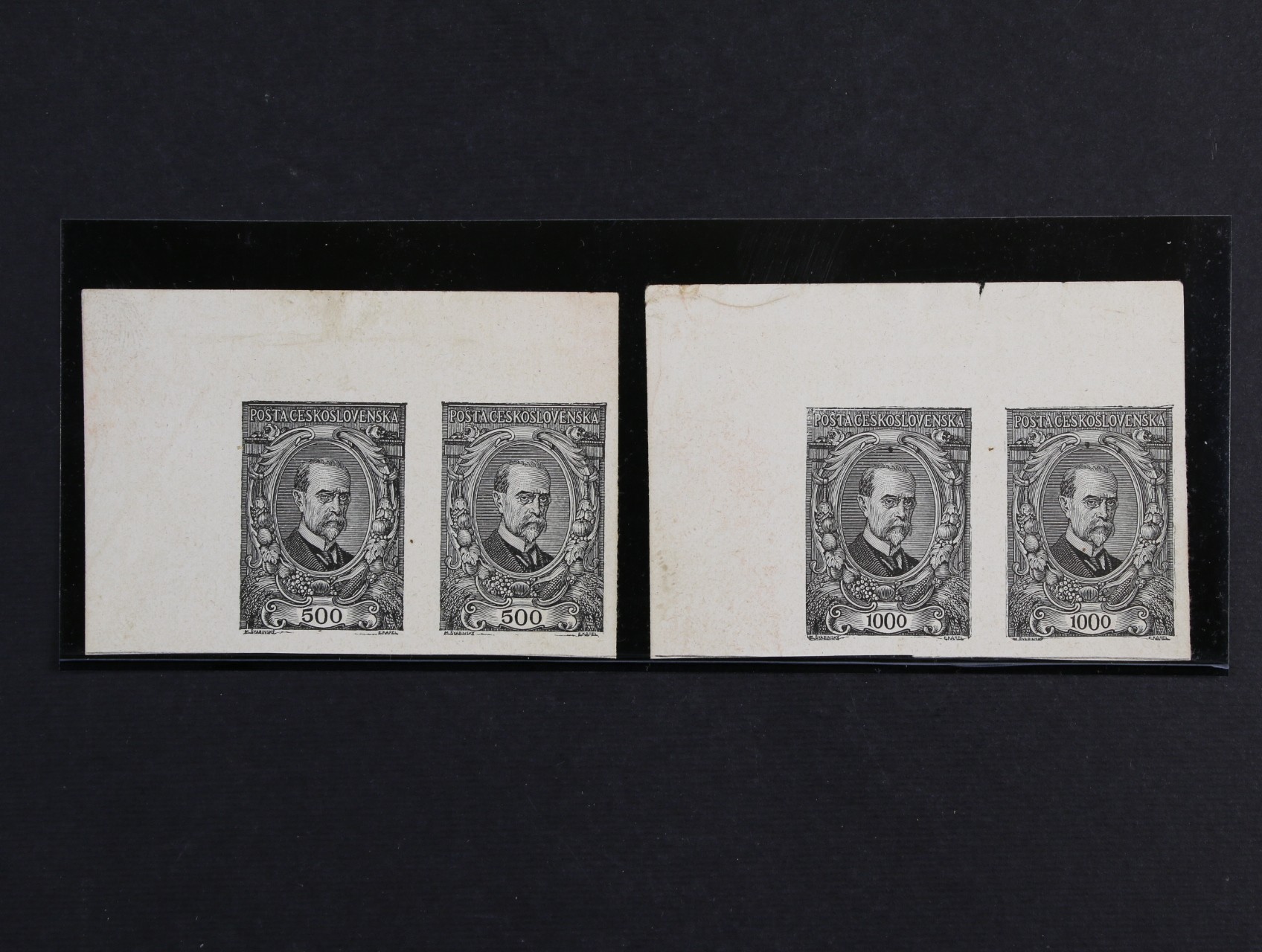 ZT zn. č. 141 + 142, obě levé horní roh. kusy v černé barvě na bílém papíře