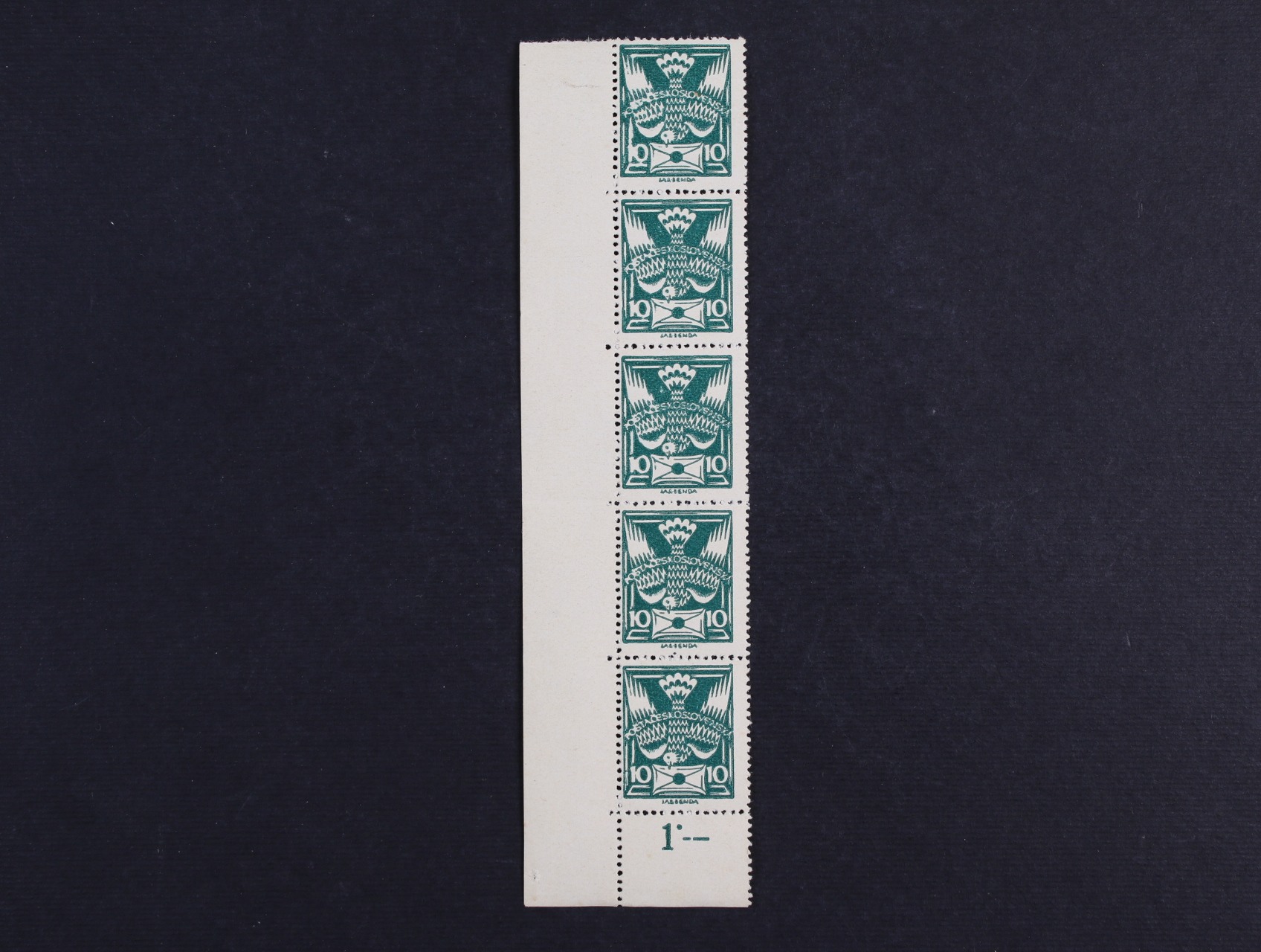 zn. č. 146 A - levá dolní roh. čtyřpáska s DZ 1, spodní perf. řada posunuta směrem dolů a šikmo