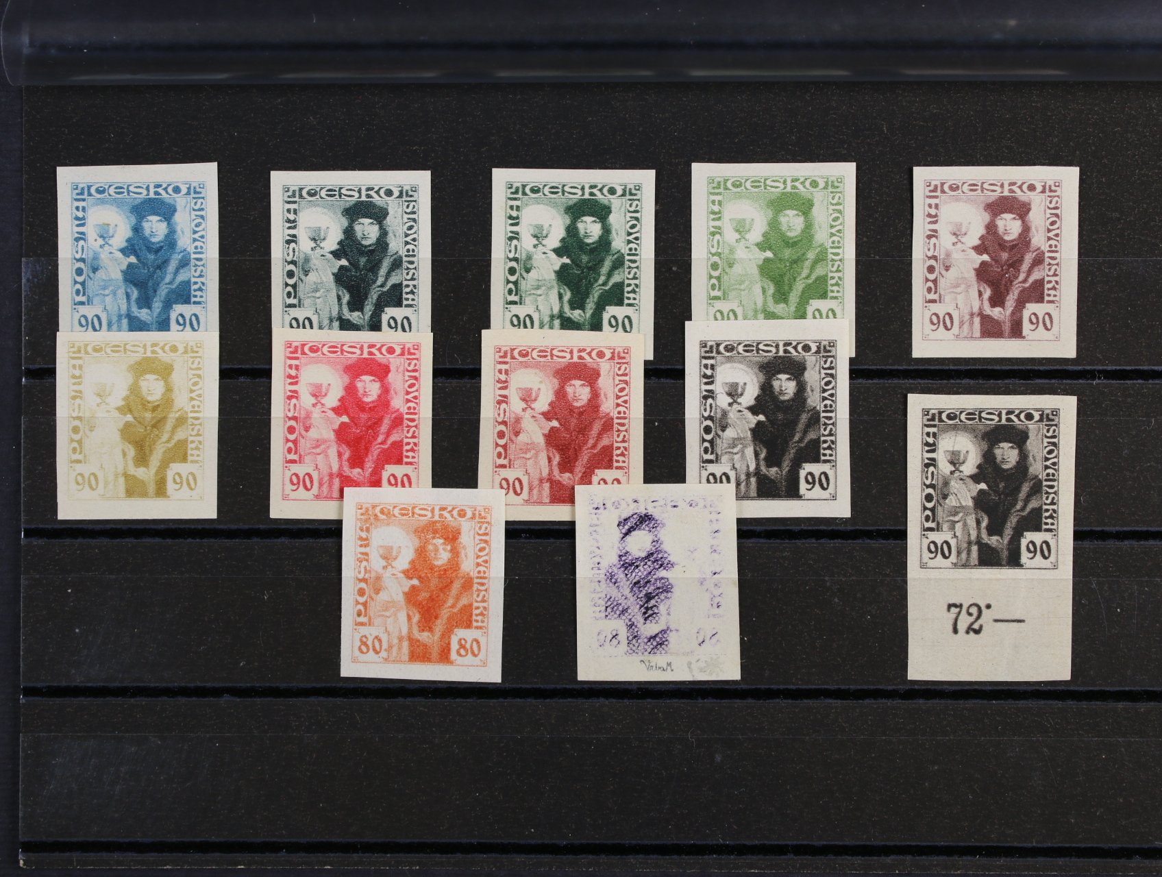 sestava 12 ks ZT zn. Husita (11x 90h, 1x 80h) v různých barvách, zk. Vrba