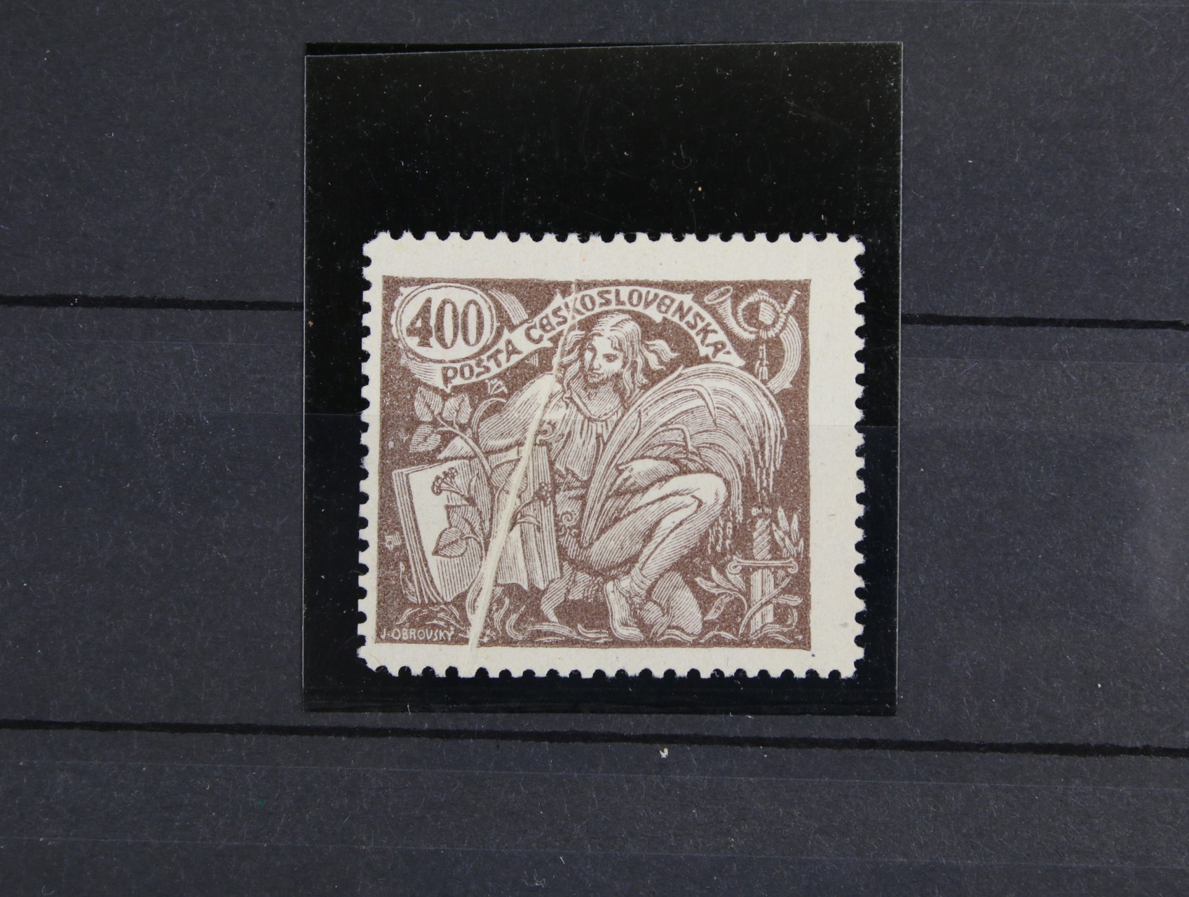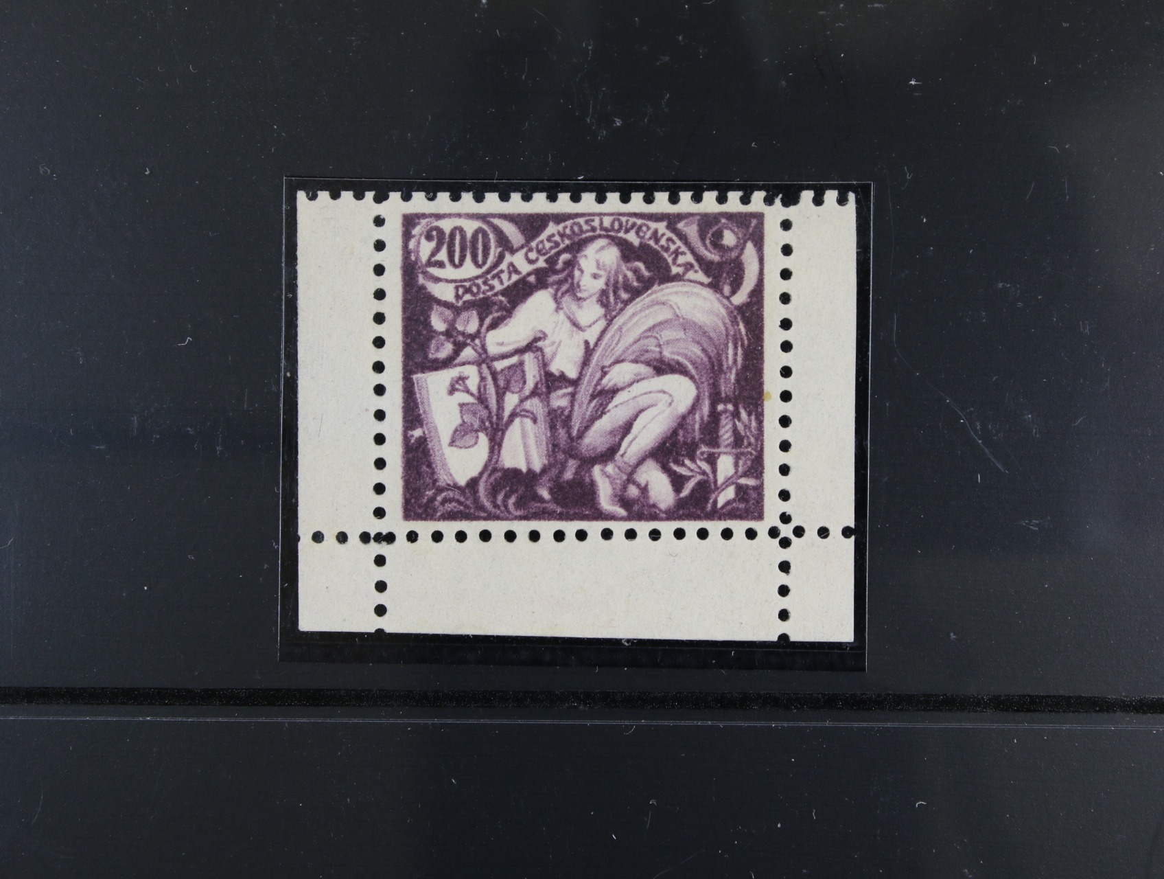 ZT zn. č. 165 hodnoty 200h v barvě fialové (hlubotisk), aršíková úprava s ŘZ 11 1/2 ze soutisku