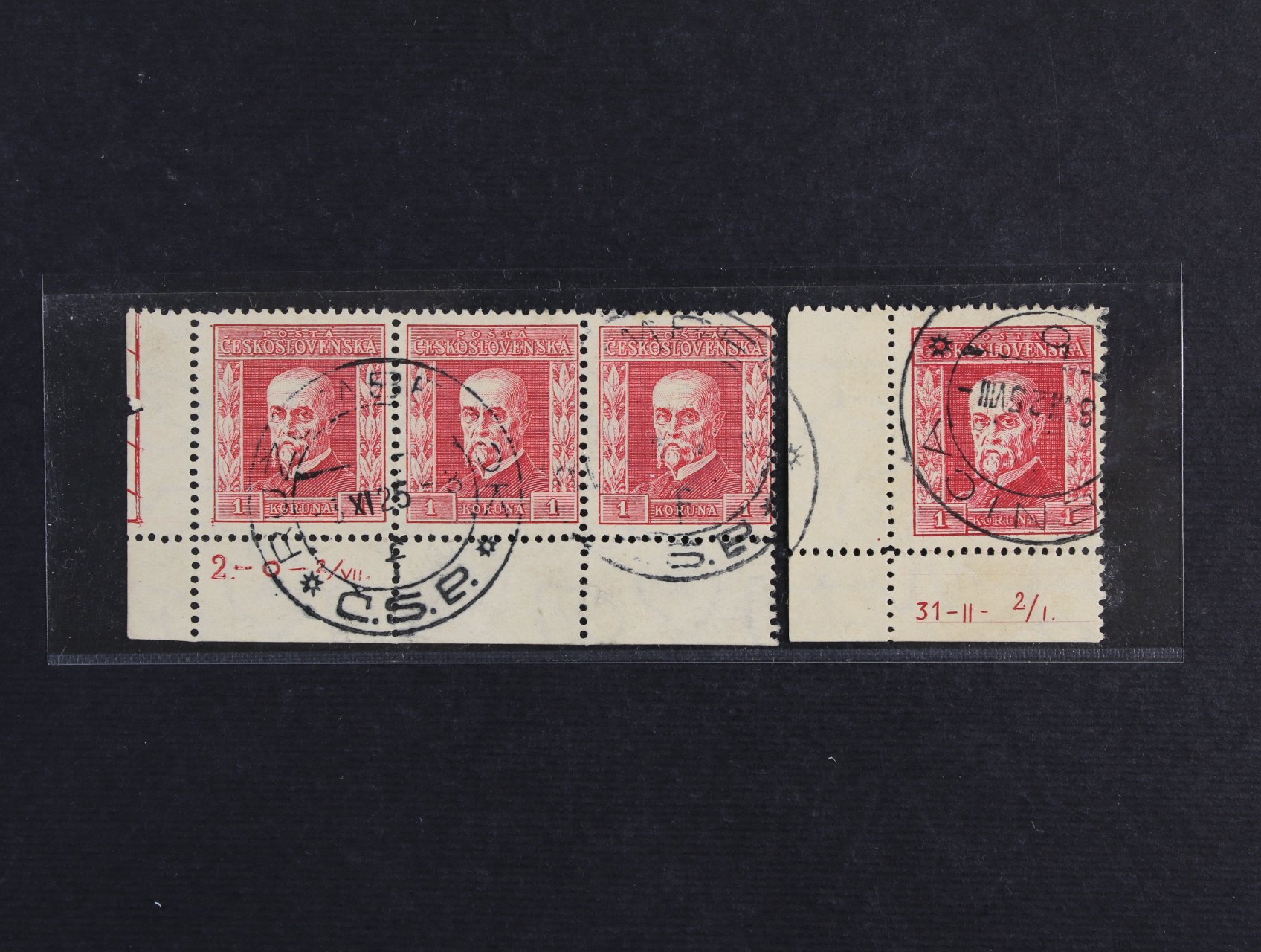 433 zn. č. 194, pr. 6 - levý spodní roh. kus s DZ 31 - II - 2/I., zn. č. 197, pr. 5 - levá spodní vodorovná třípáska s DZ 2.- O - 2/VII 300