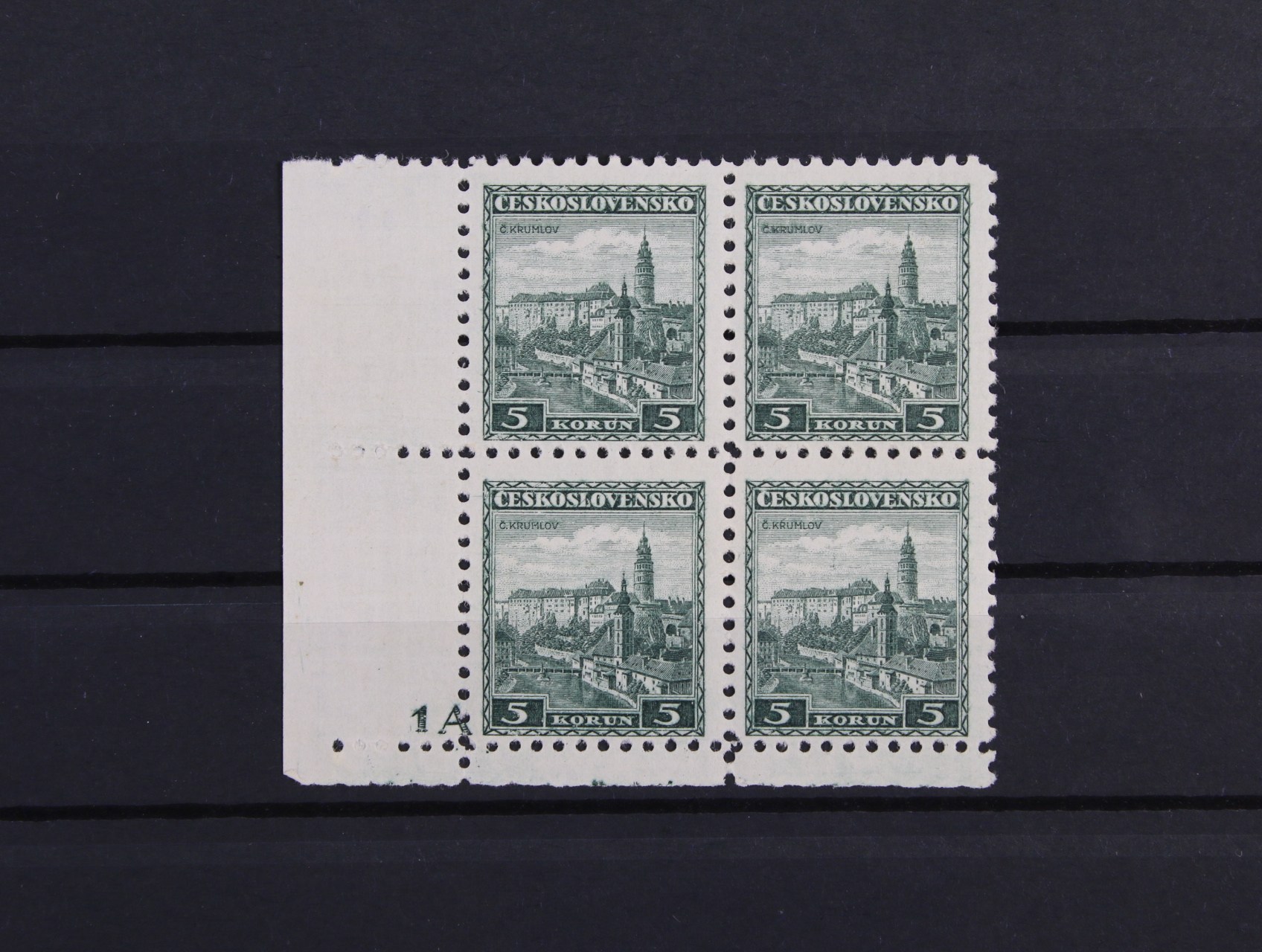 zn. č. 267 - levý spodní roh. čtyřblok s DZ 1 A + DV dvojitá moletáž Č. Krumlov