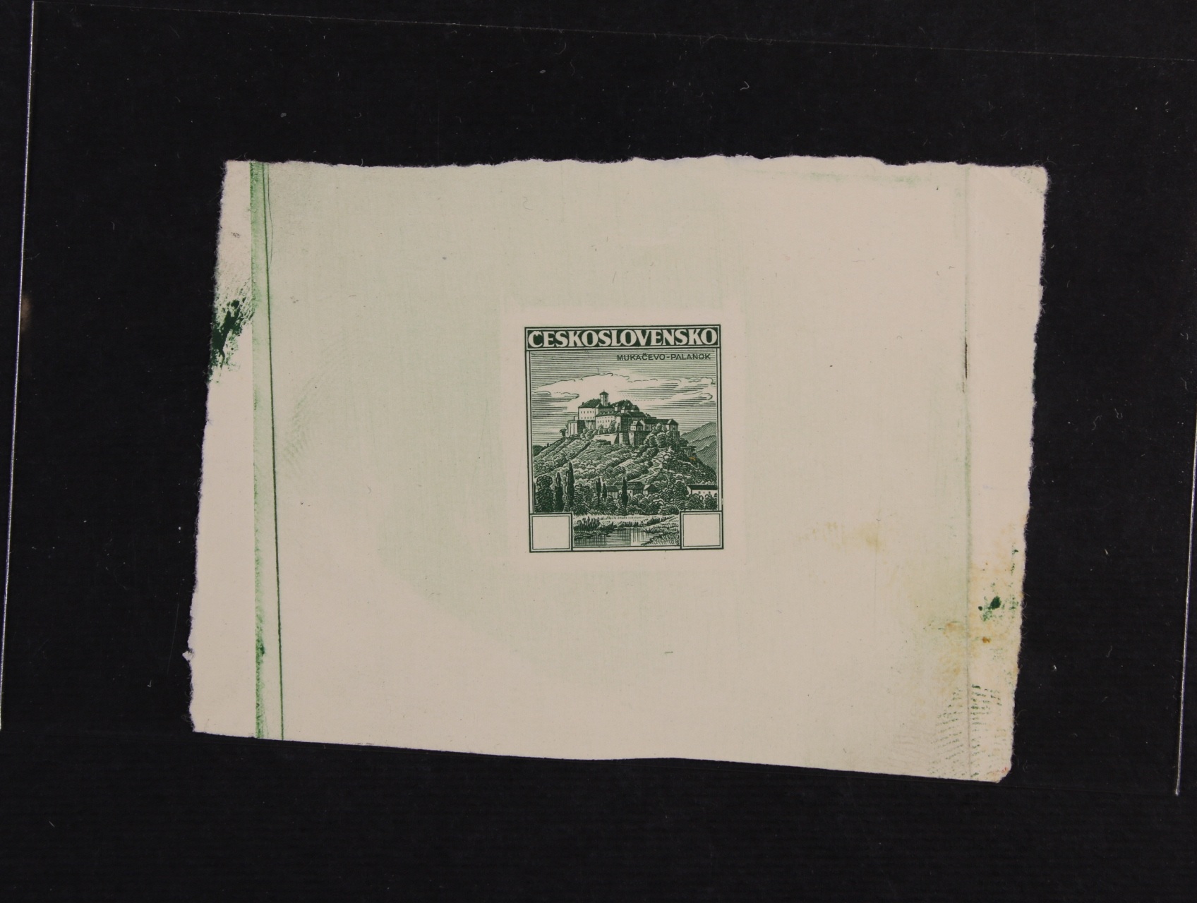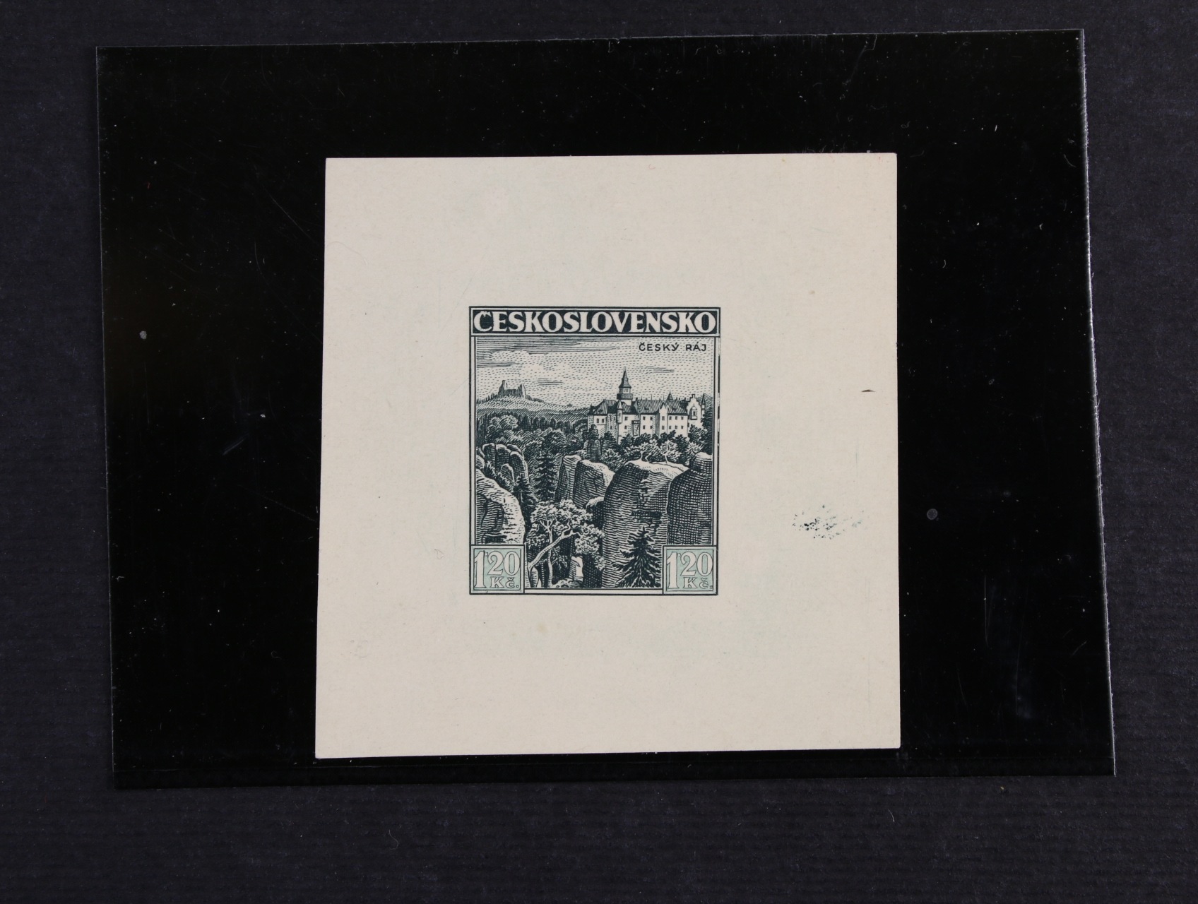 otisk původní rytiny zn. č. 309 se slabým označením hodnoty 1,20Kč v hodnotovém štítku, v barvě zelené na kousku papíru, zk. Vrba, Fischmeister