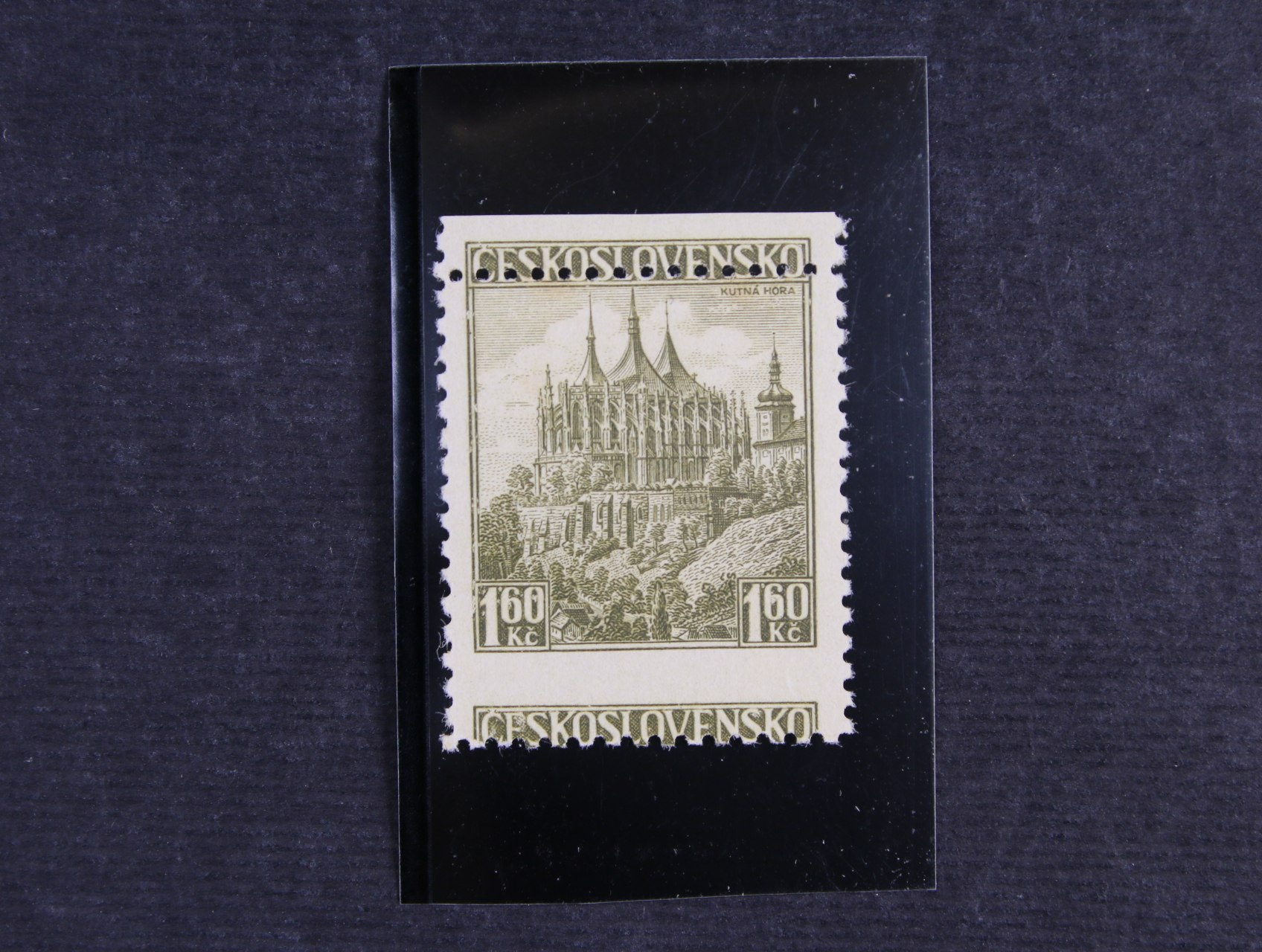 zn. č. 306 se silným posunem perforace dolů do další zn., na horním okraji nahnědlé skvrnky v lepu