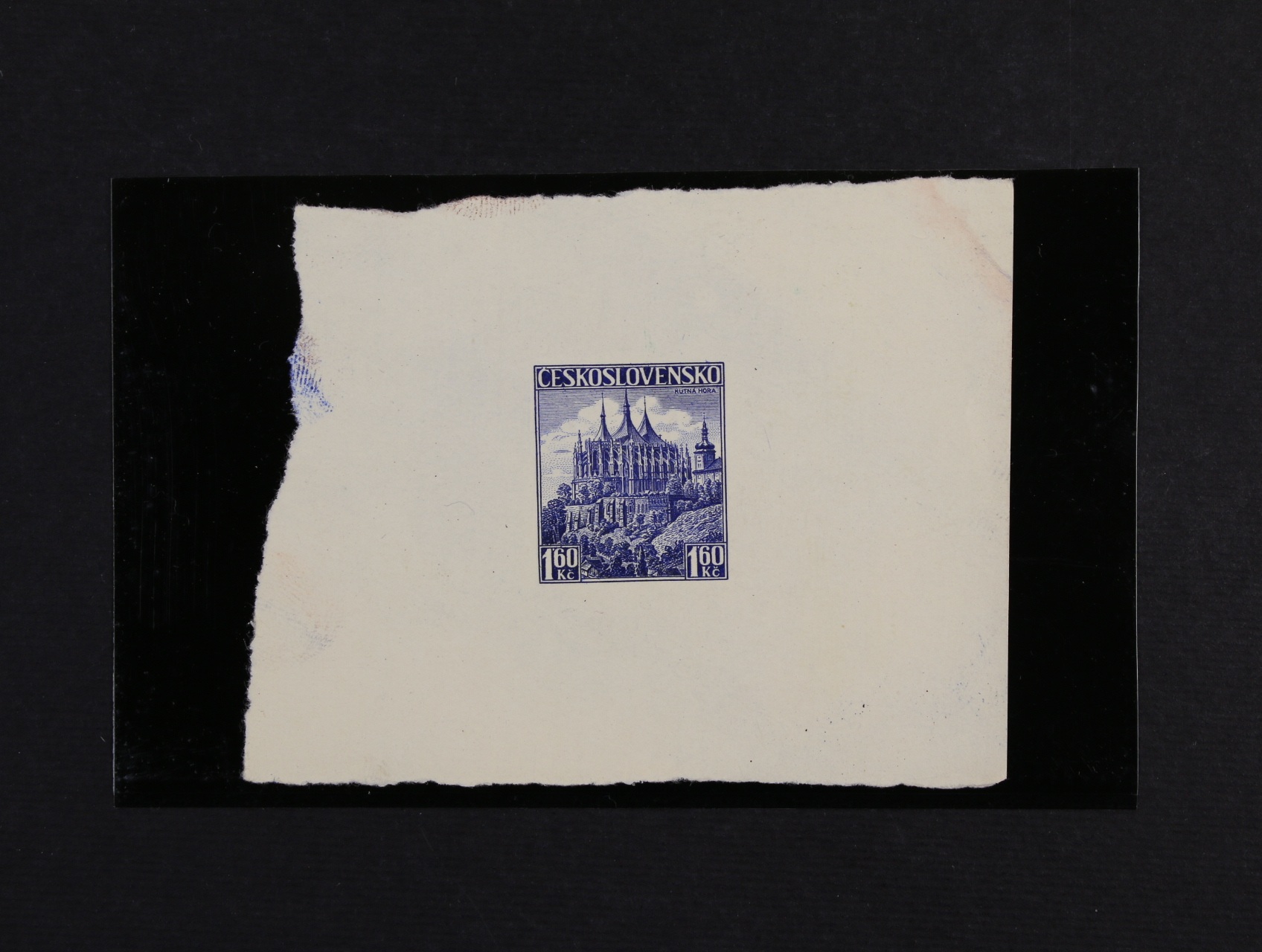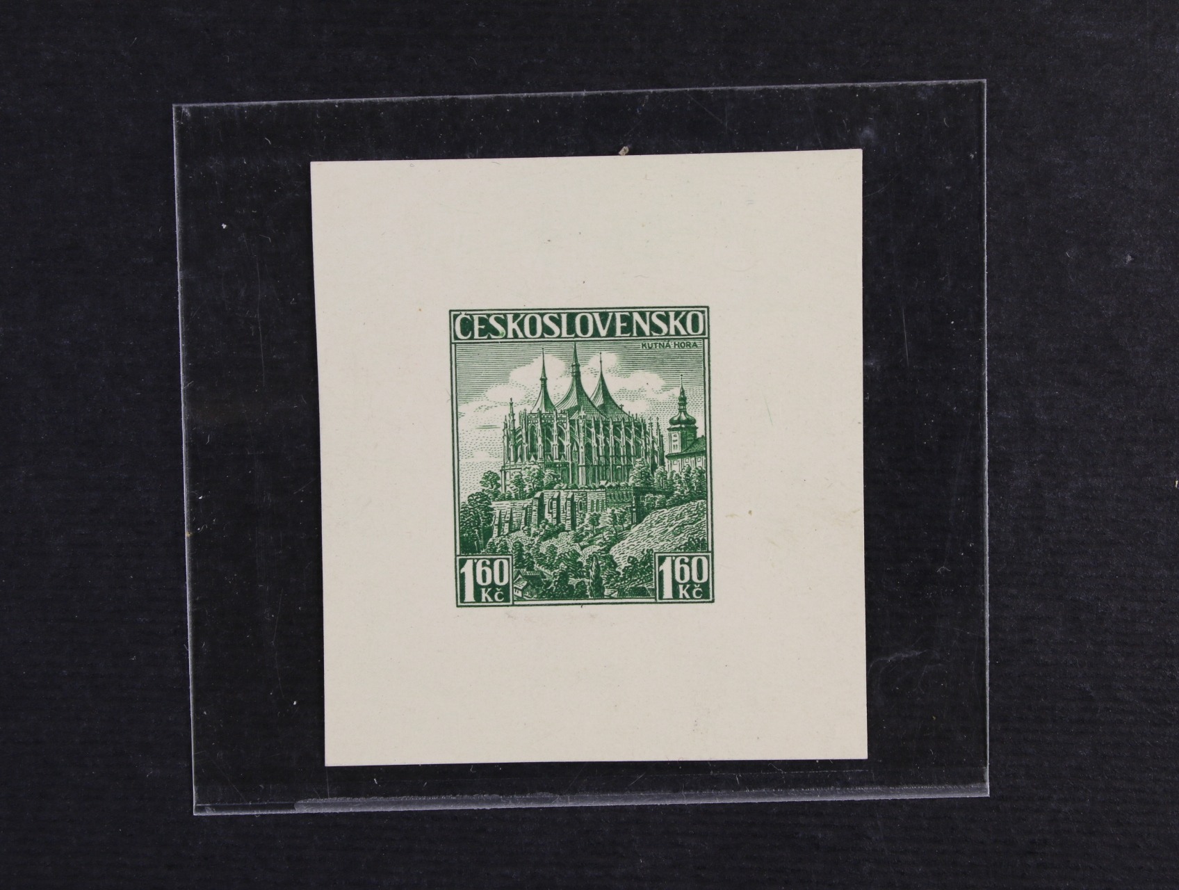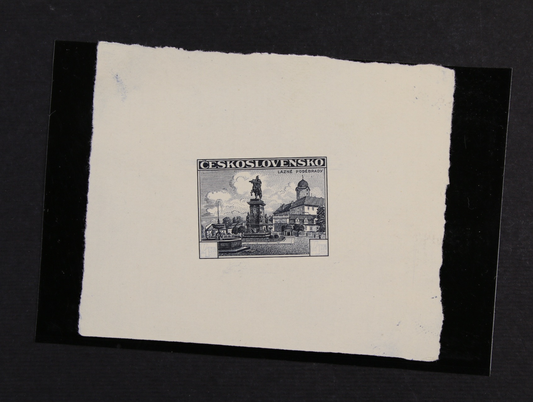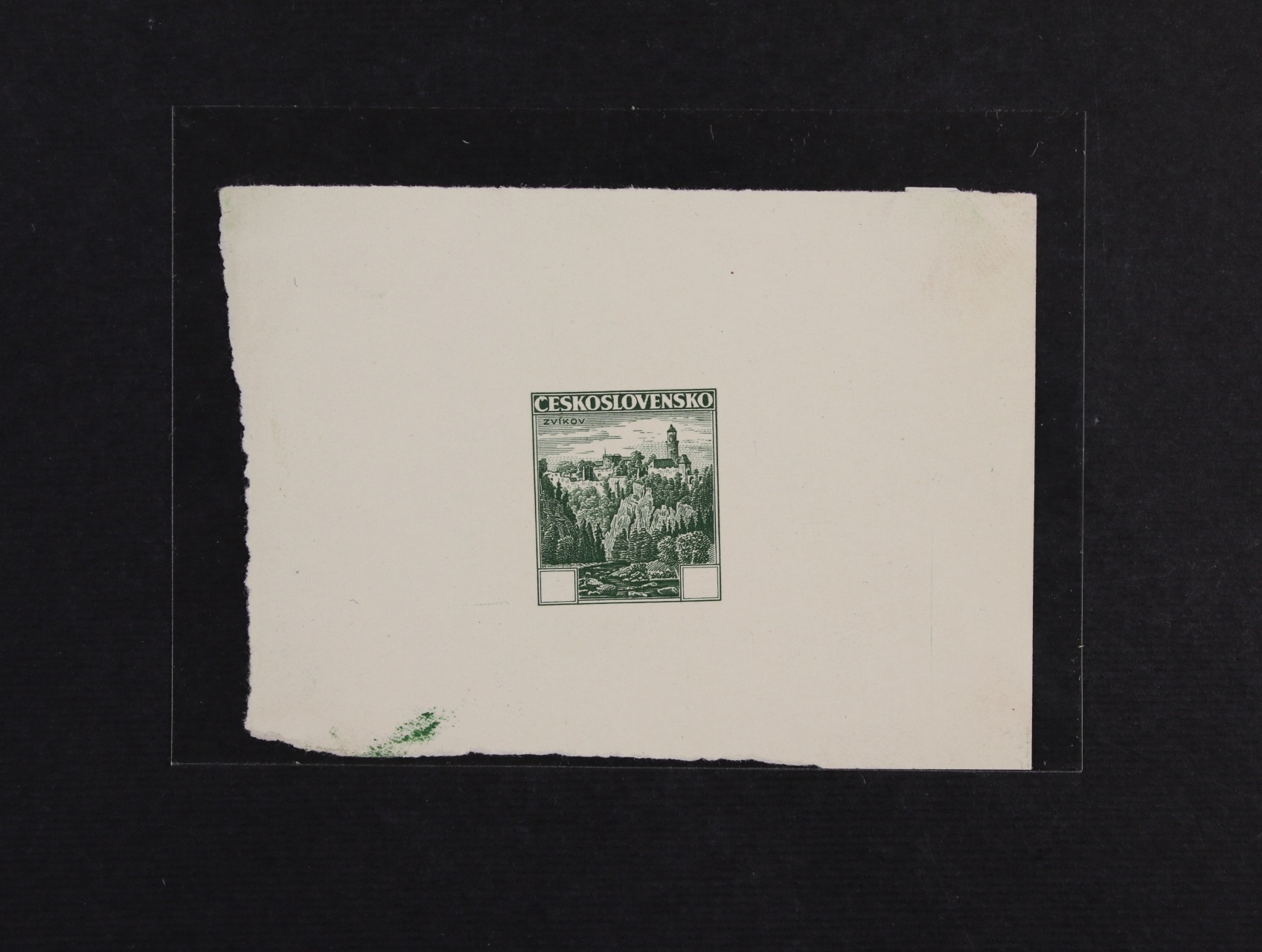 otisk původní rytiny zn. č. 306 s označením hodnoty 1,60Kč v hodnotovém štítku, v barvě zelené na kousku papíru, zk. Vrba