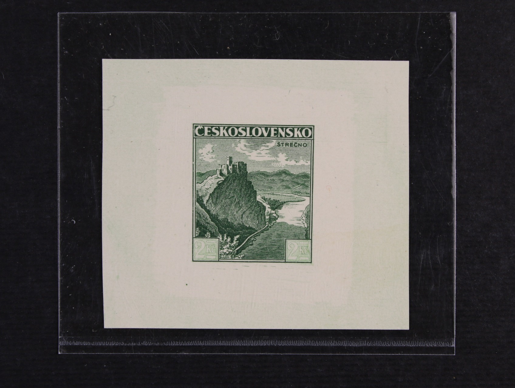 otisk původní rytiny zn. č. 308 se slabým označením hodnoty 2Kč v hodnotovém štítku, v barvě zelené, zk. Karásek