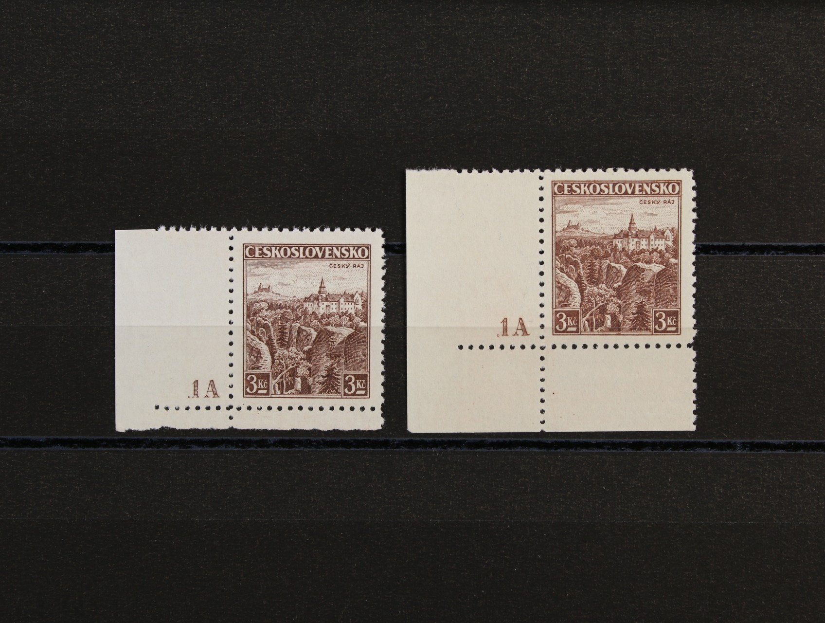 zn. č. 309 úzký a široký rohový kus s DČ1 + 1A s nápichovým bodem (nový náklad pro protektorátní zn.)
