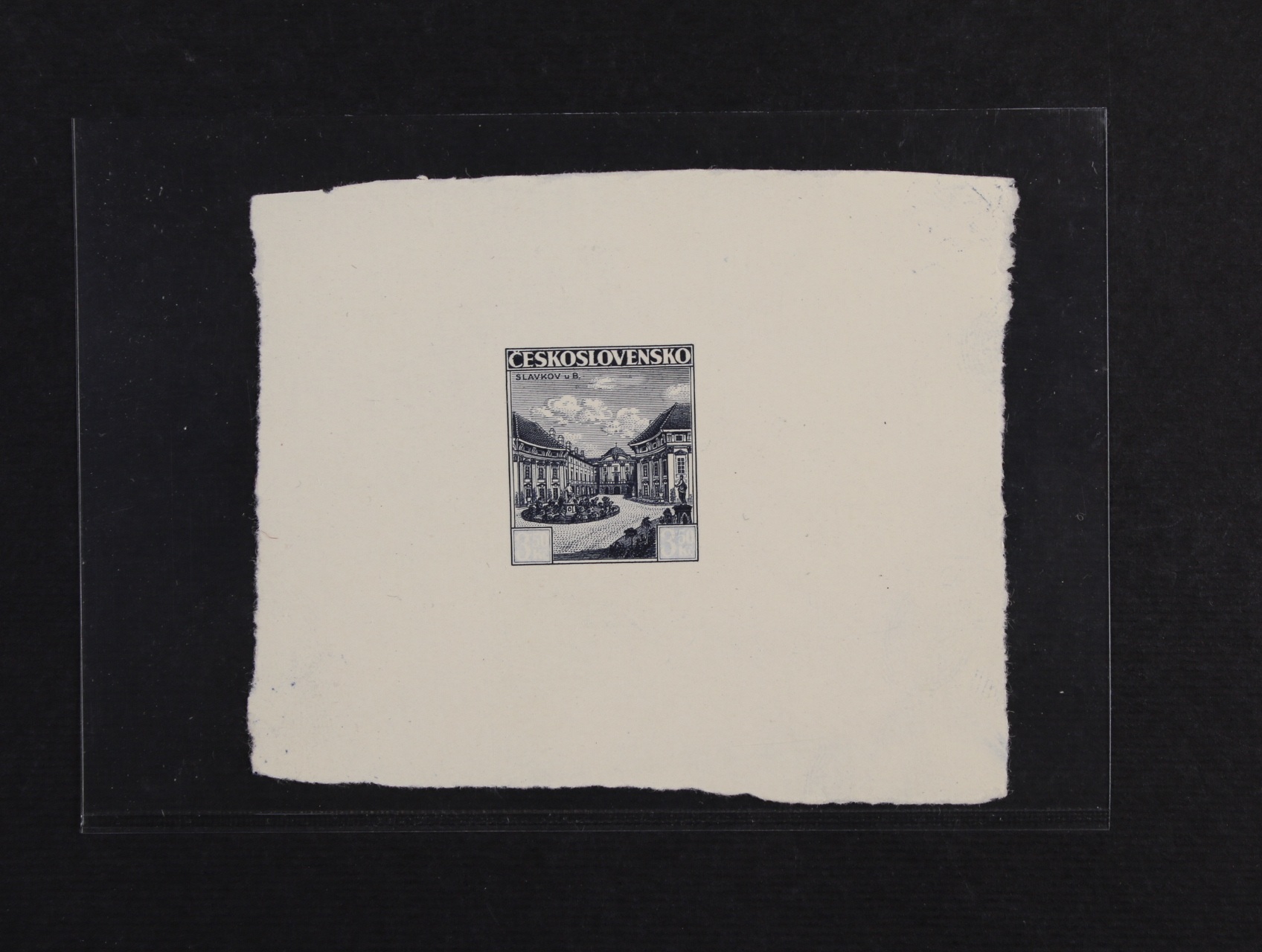 otisk původní rytiny zn. č. 310 se slabým označením hodnoty 3,50Kč v hodnotovém štítku, v barvě modré na kousku papíru, zk. Vrba
