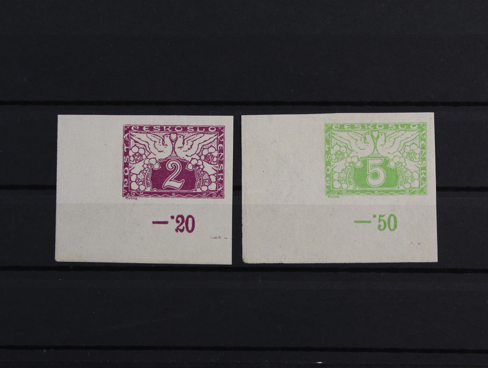 618 zn. DL č. 1 s přetiskem VZOREC vlevo, neznatelná stopa po nál. 1500