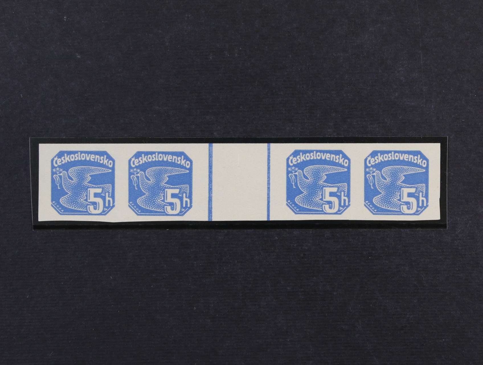 615 zn. NV č. 15 5h modrá, nepřeložené vodorovné čtyřzn. meziarší, zk. Gilbert 4400