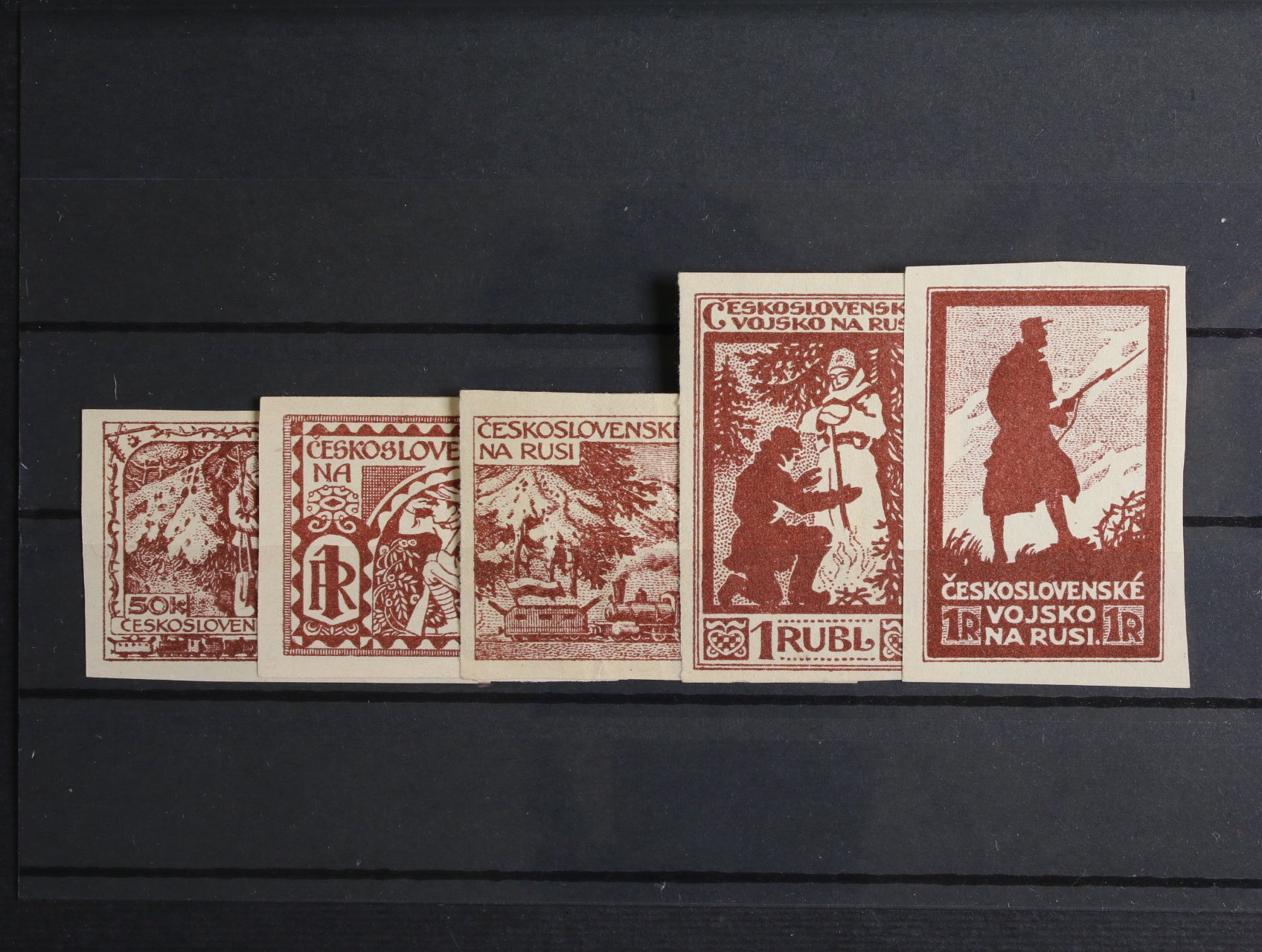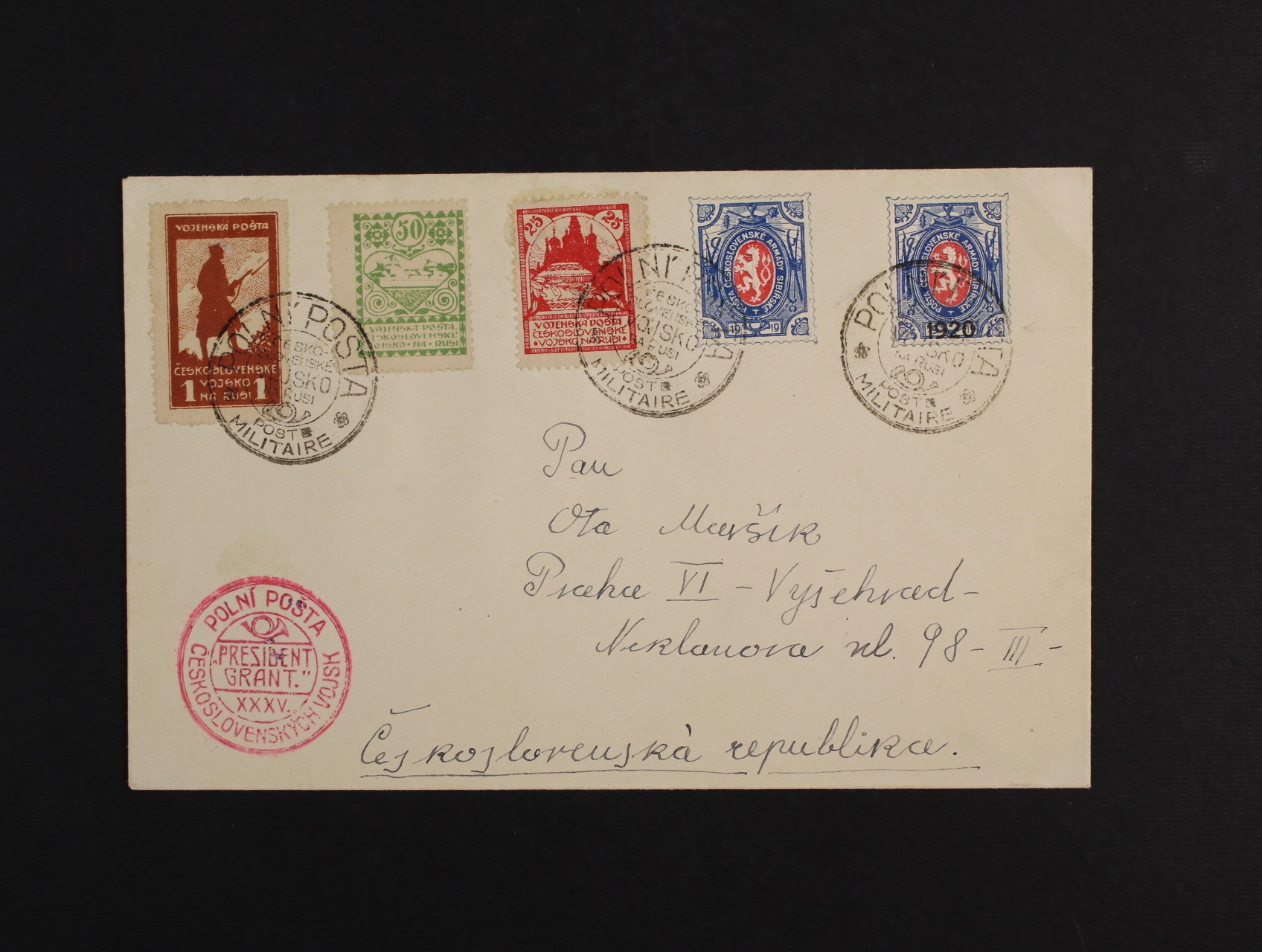 Sibiř - celistvost zaslaná do Prahy, frank. zn. PP č. 2 - PP 6, pod. raz. POLNÍ POŠTA ČESKOSLOVENSKÉ VOJSKO NA RUSI + červené raz. POLNÍ POŠTA ČESKOSLOVENSKÝCH VOJSK PRESIDENT GRANT