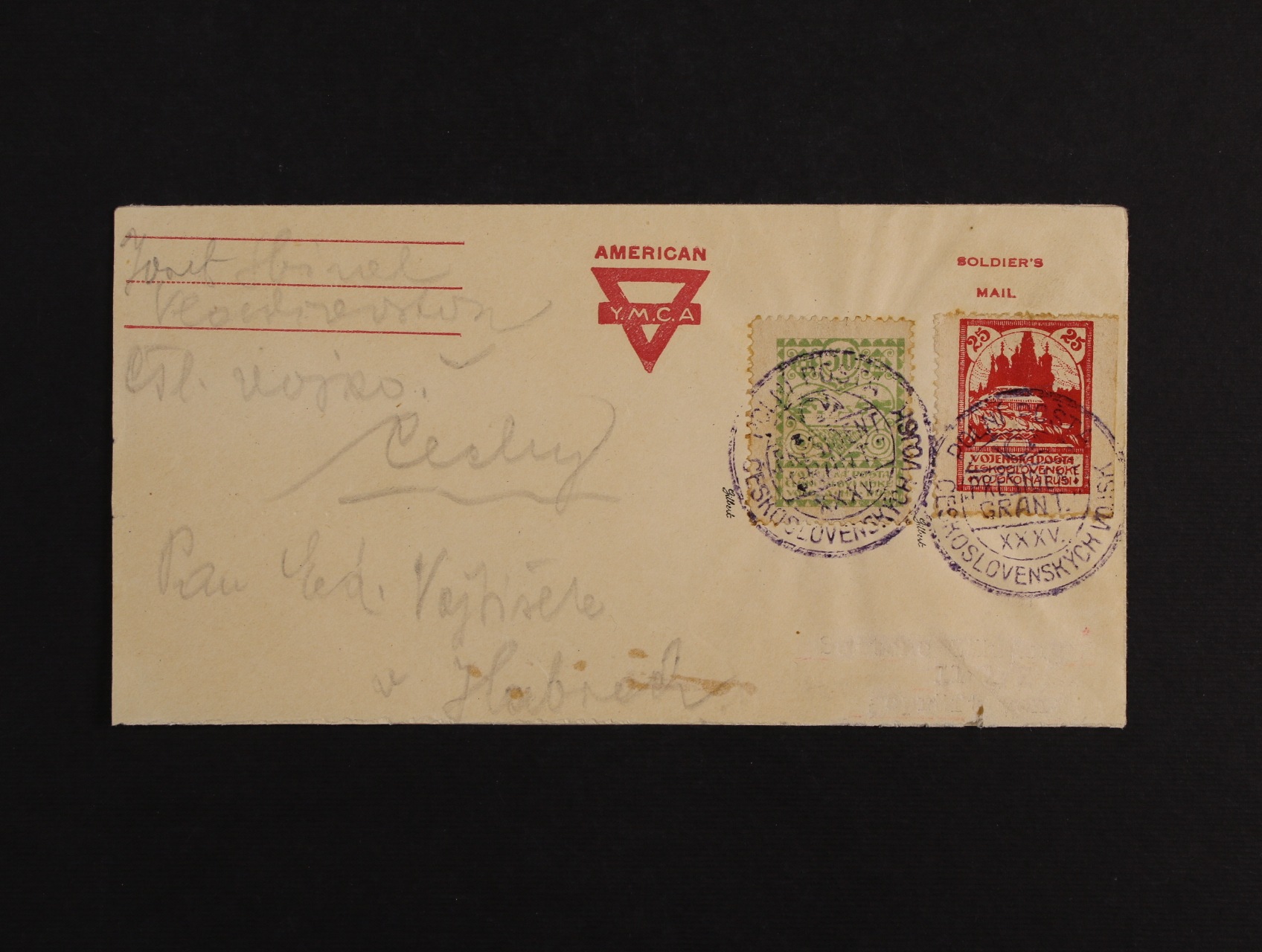 Sibiř - celistvost do Čech (oficielní obálka AMERICAN Y.M.C.A.) frank. zn. PP č. 2 + PP 3, podací fialové raz. POLNÍ POŠTA ČESKOSLOVENSKÝCH VOJSK PRESIDENT GRANT XXXV, zk. Gilbert