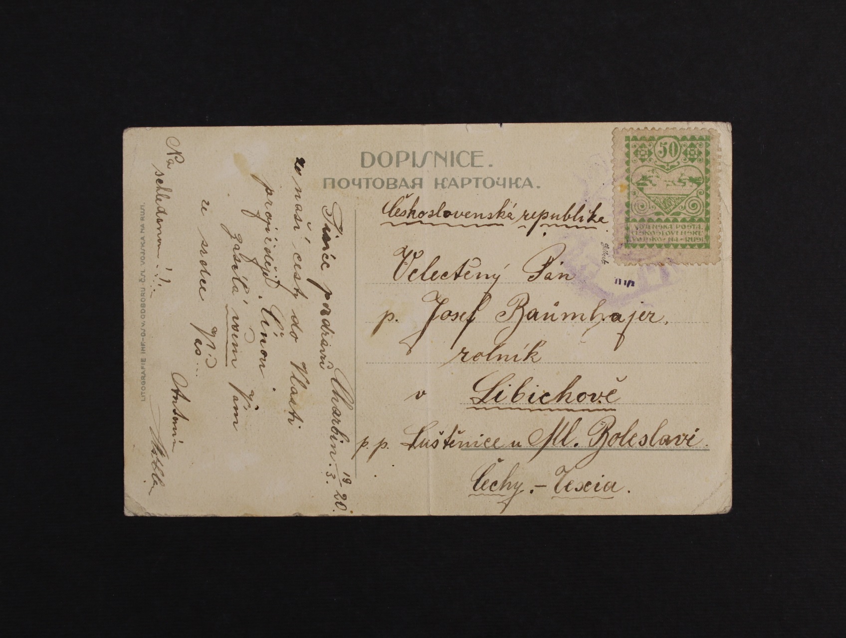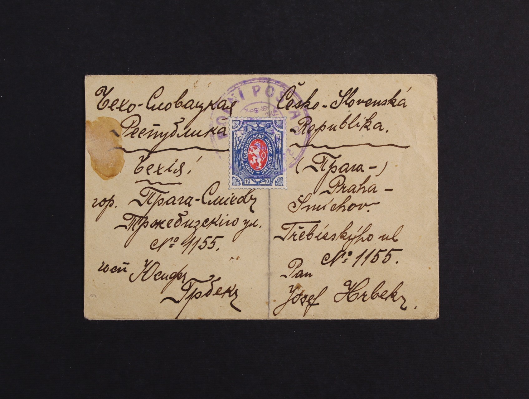 Sibiř - celistvost od příslušníka čs. jednotek v Harbinu zaslaný do Čech 10.3.20, frank. zn. PP č. 2 A, nečitelné raz., zk. Gilbert