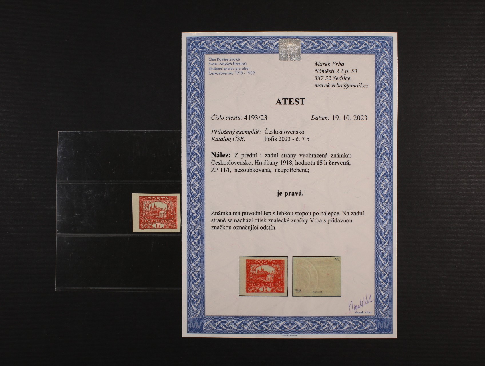 76 zn. č. 7b 15h červená, krásný sytý odstín, velmi vzácná barva, zk. a atest Vrba, lehká stopa po nál. 24000