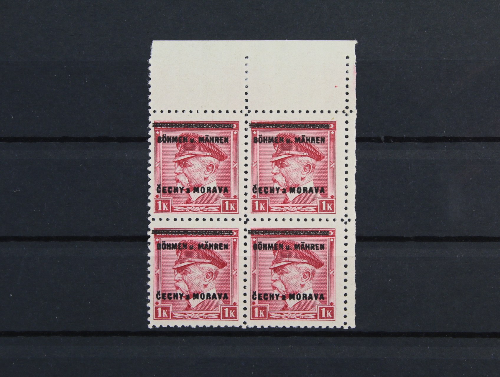 zn. č. 1 - pravý horní roh. čtyřblok s posunem přetisku vpravo
