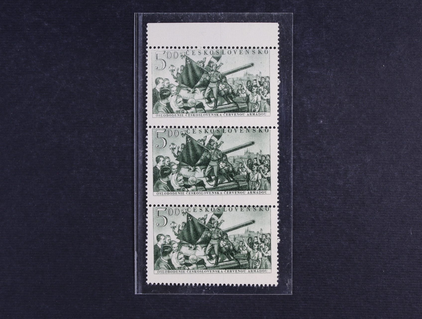 1083 ZT zn. č. 654 ve svislé třípásce s horním okrajem s mírně posunutou perforací směrem dolů v barvě zelené 2600