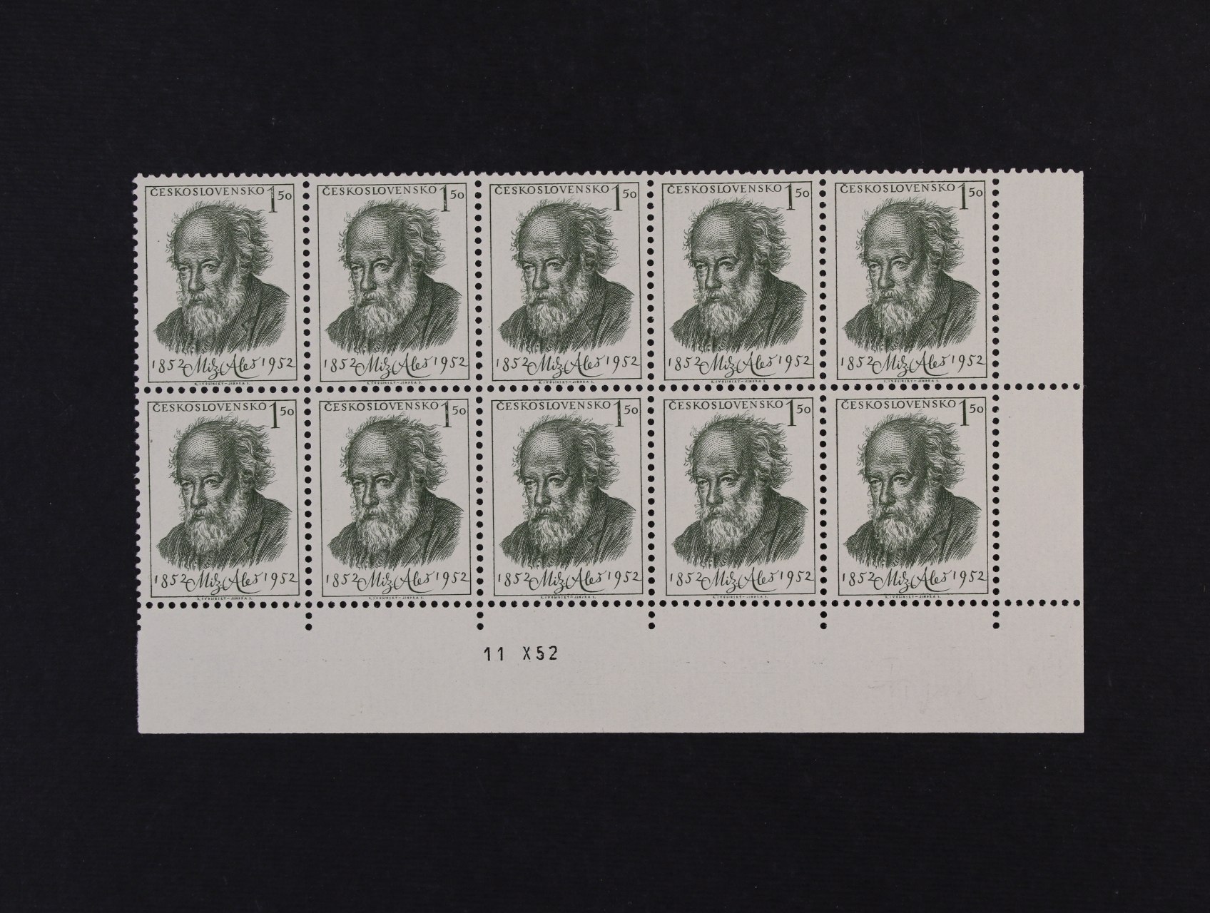 1084 zn. č. 679 - pravý spodní roh. 10ti-blok s DV dvojtečka za jménem Mik a datem tisku 300
