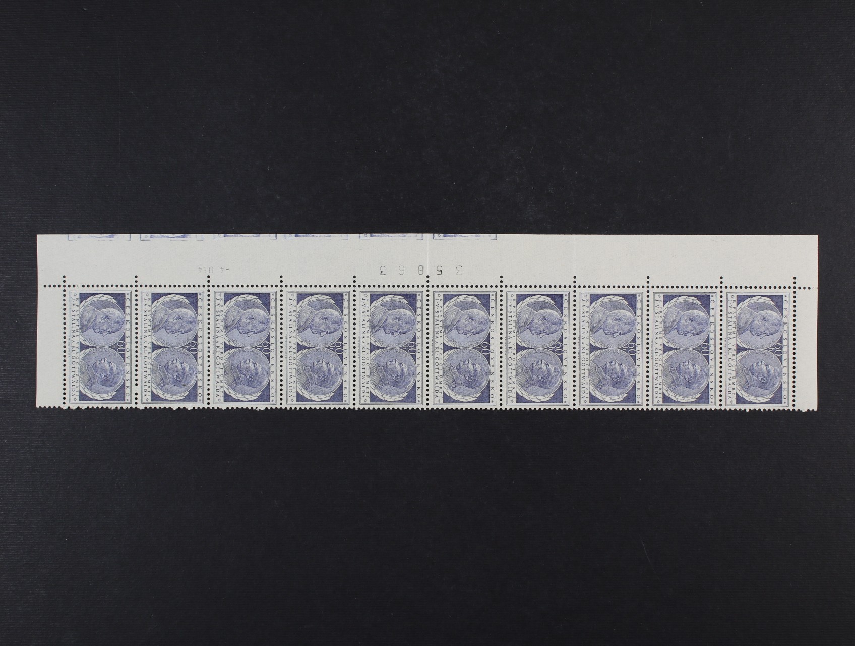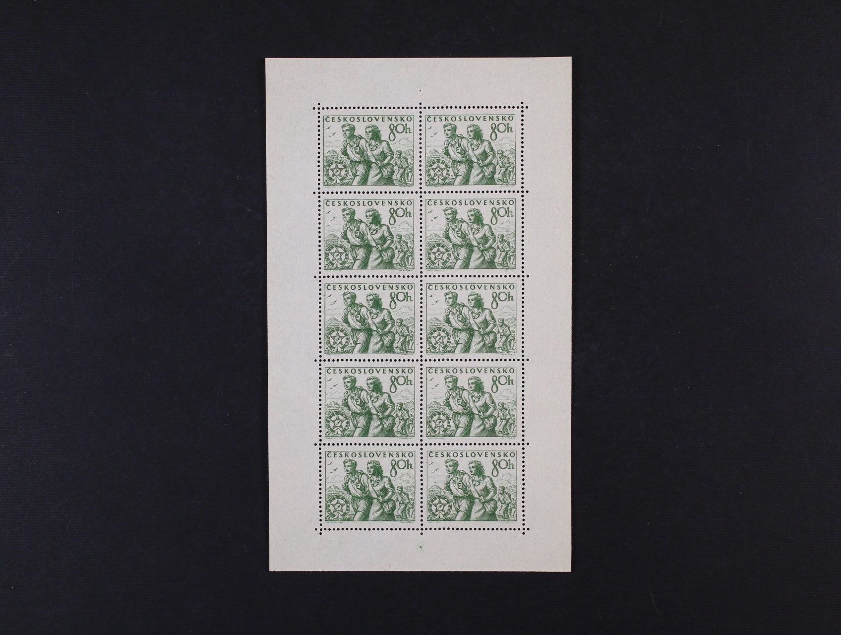 1090 zn. č. 773 - levá svislá krajová 10ti-páska, na šesti zn. polích otisk moletáže, kat. cena 3000 Kč 2000