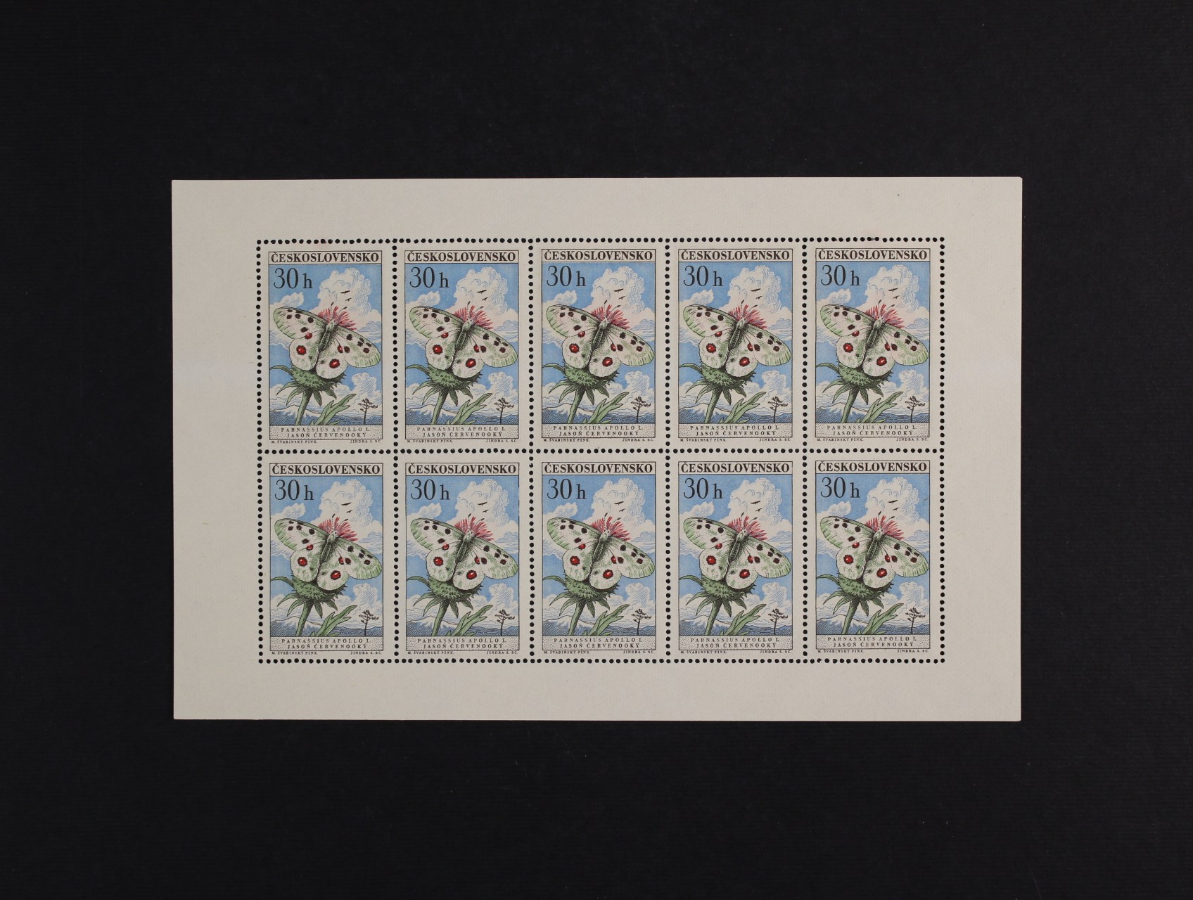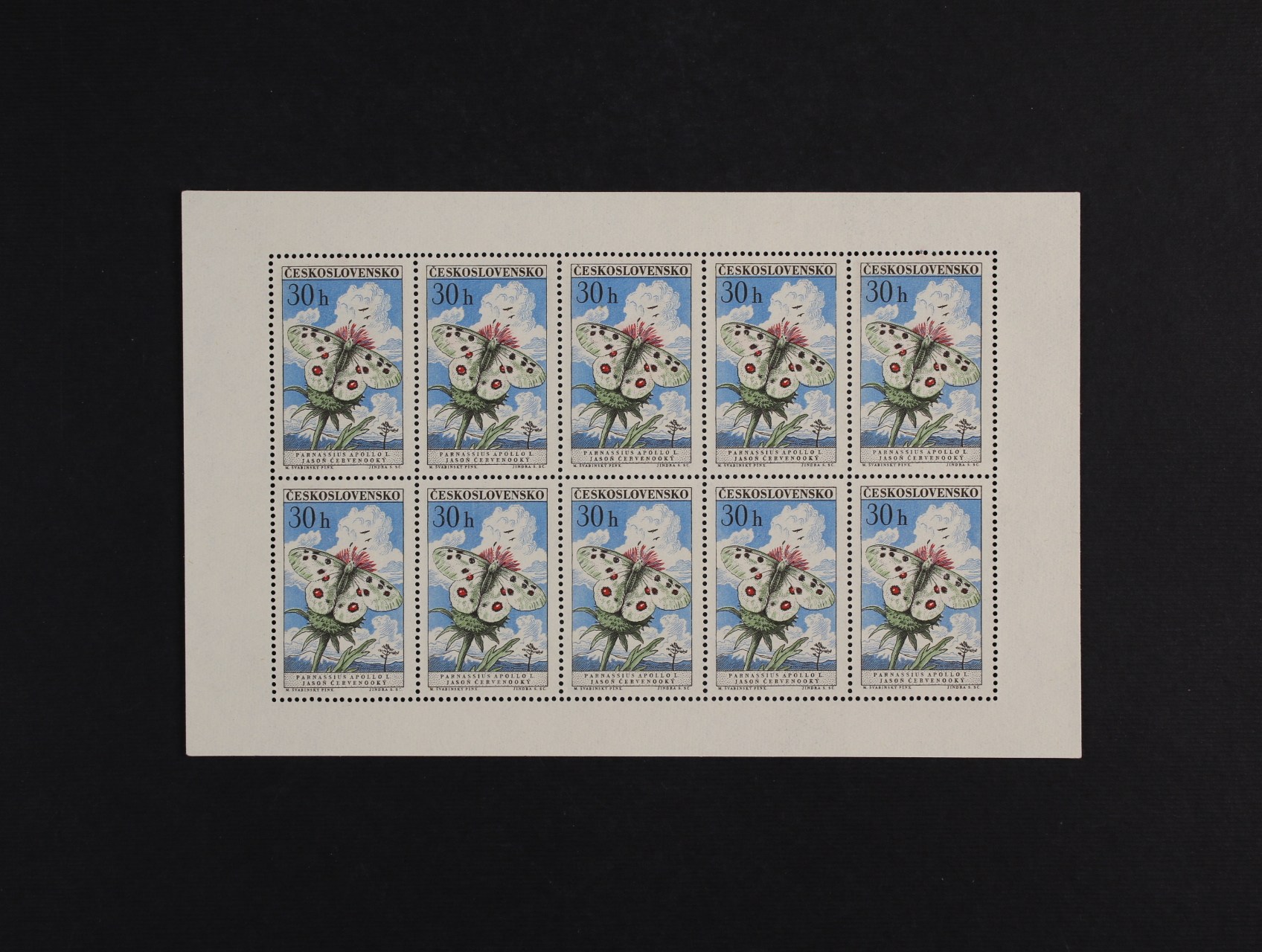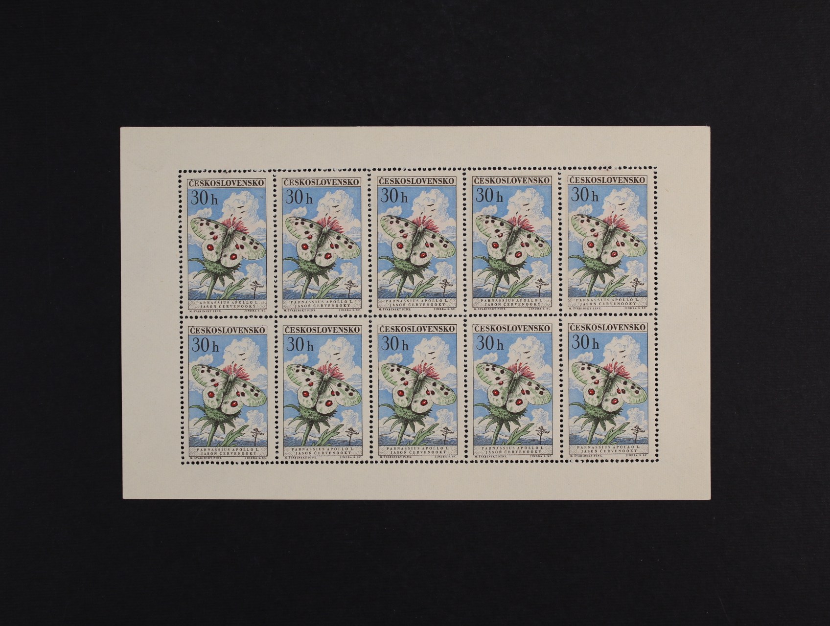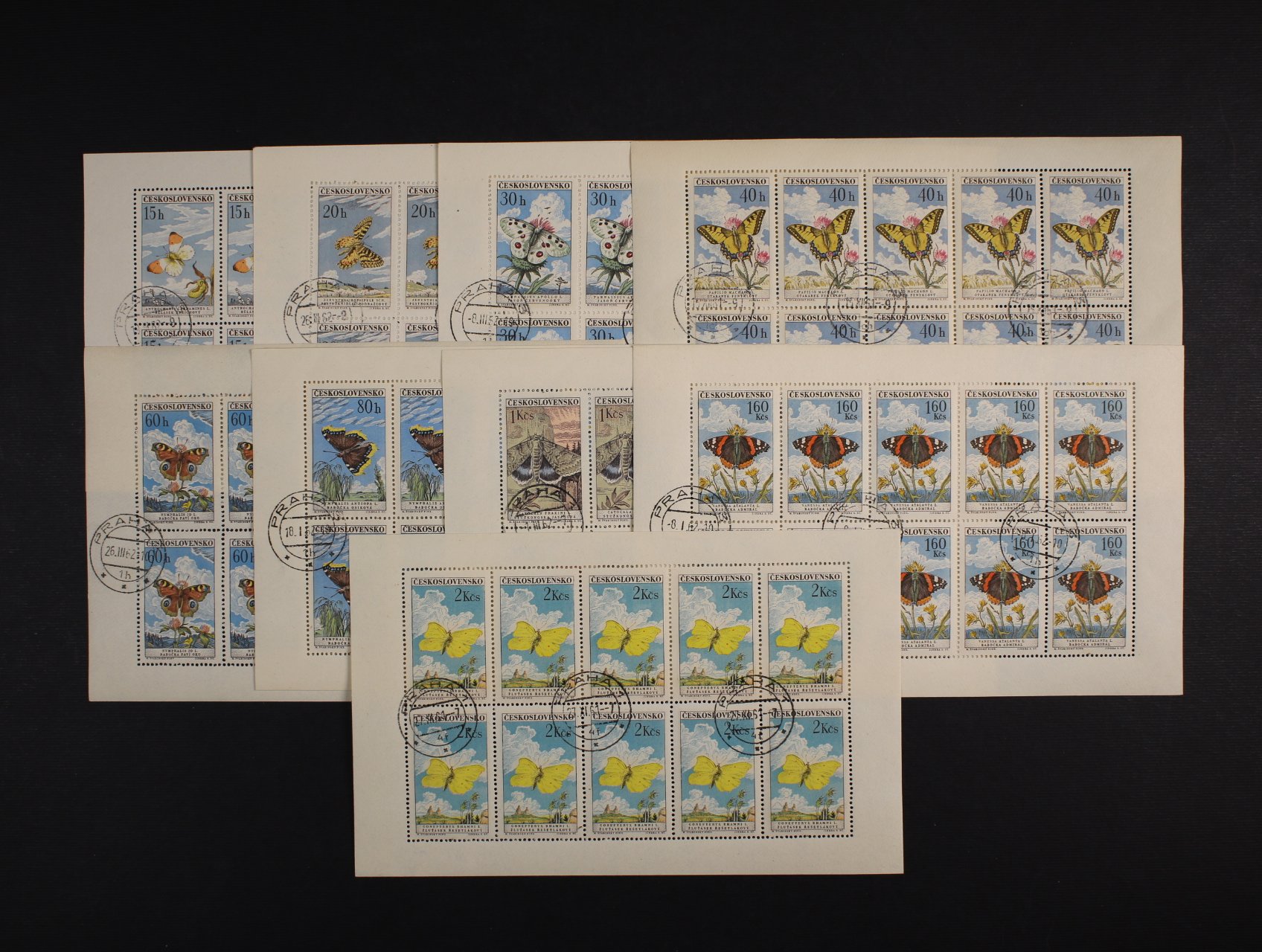 PL č. 1217 - PL 1225 - kompl. série motýli, 1217 deska F 2.1, 1218 deska B 1.3, 1219 deska B 1.1, 1220 deska B 1.1b, 1221 deska A 2.1, 122 deska D 2.1, 1223 deska A 1.1, 1224 deska A 1.1, 1225 deska B 1.3, zajímavá sestava
