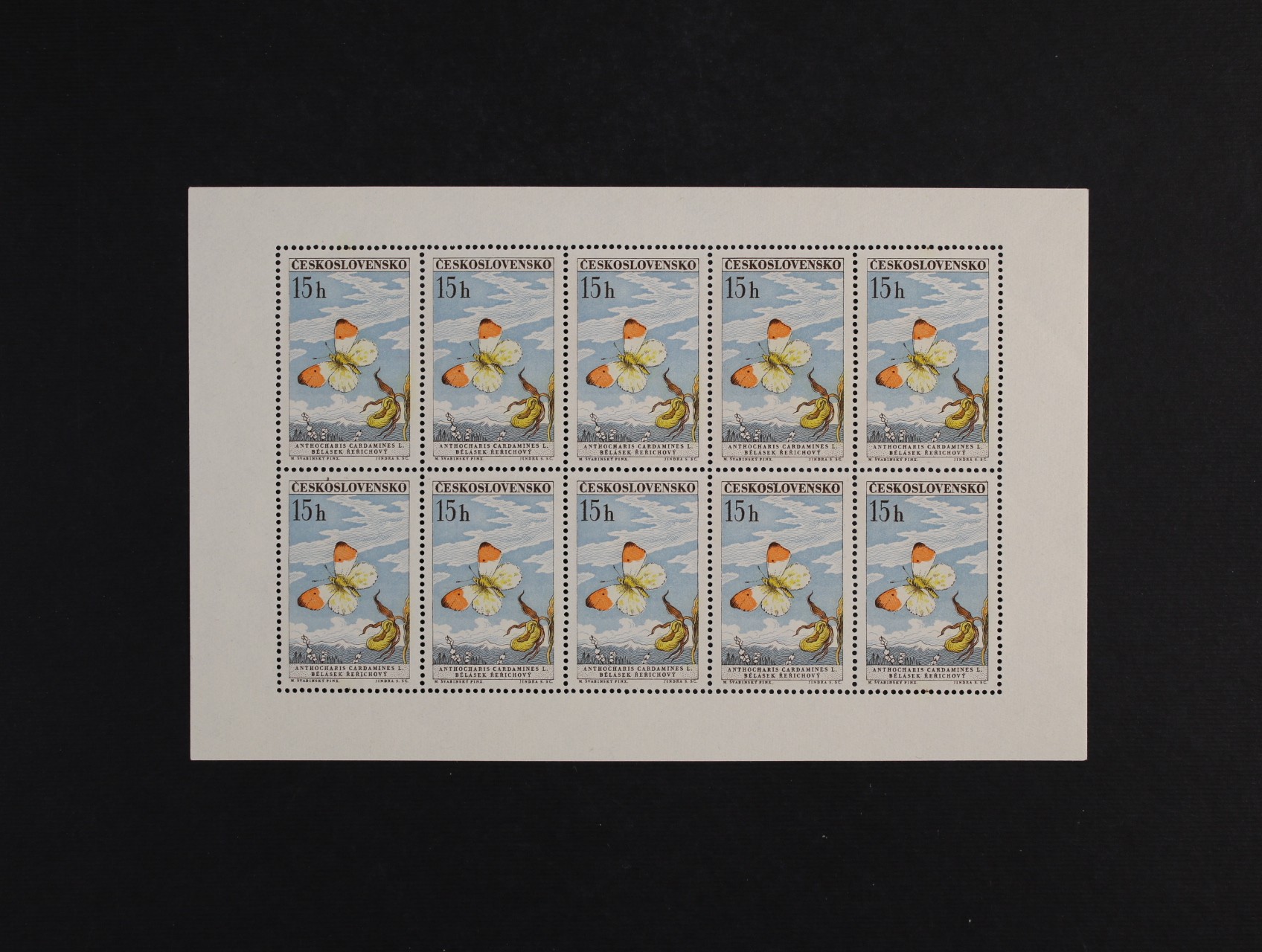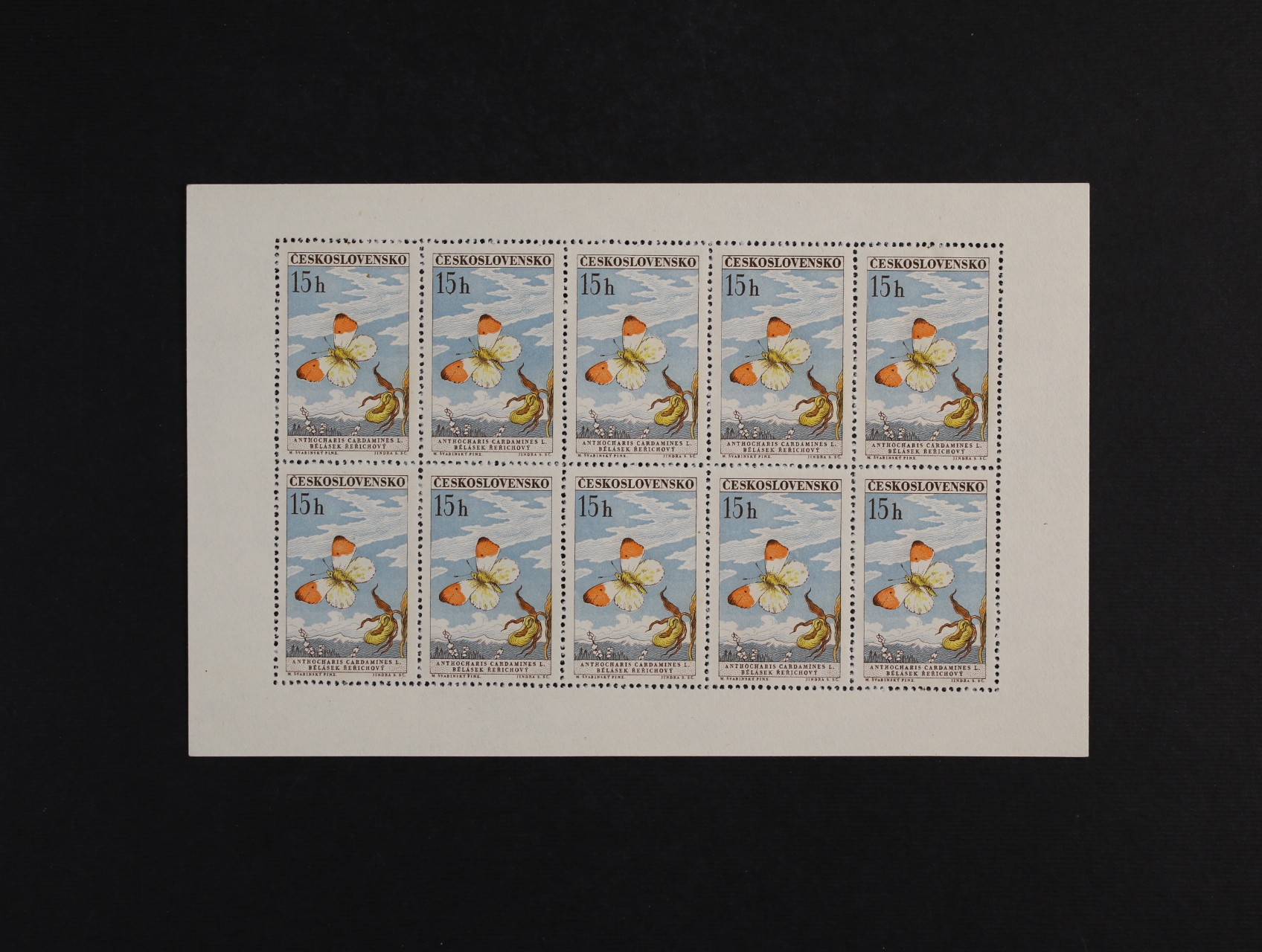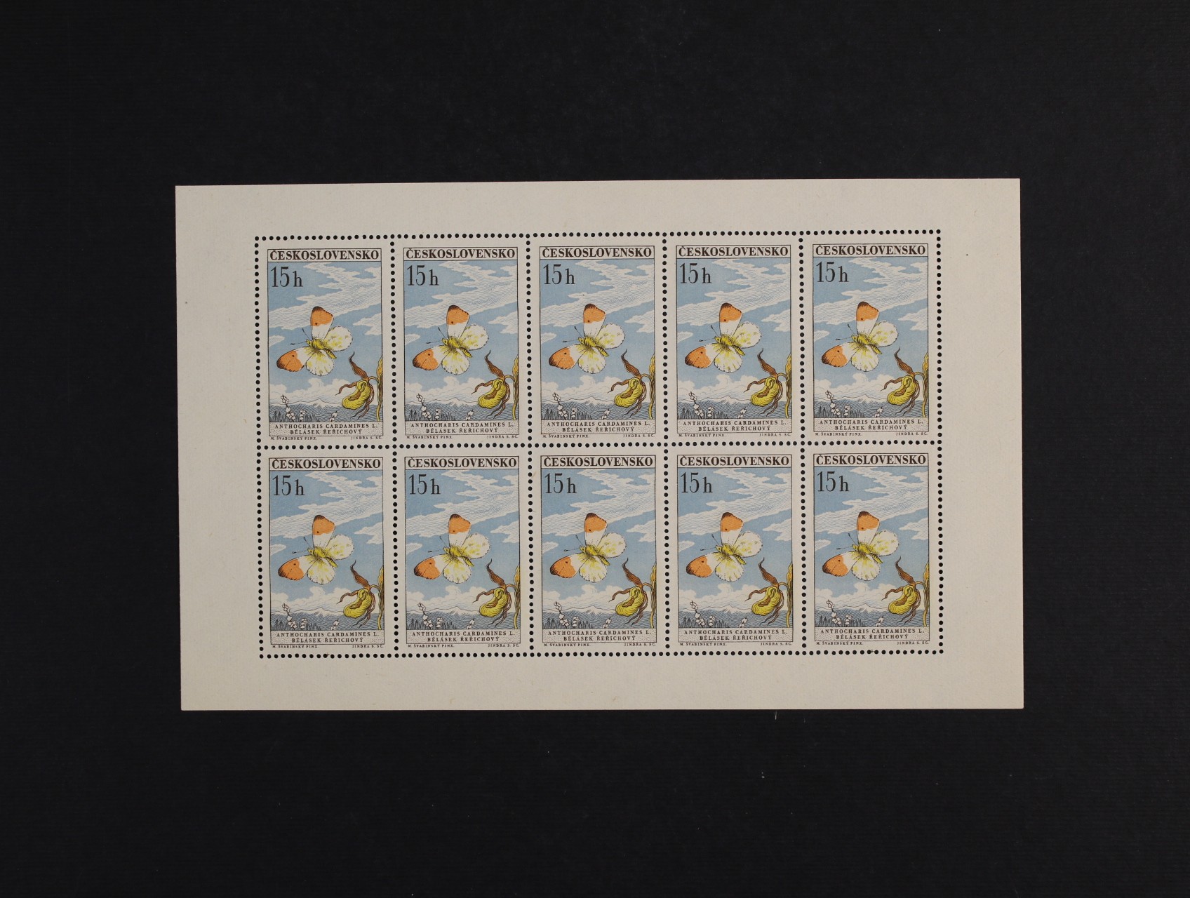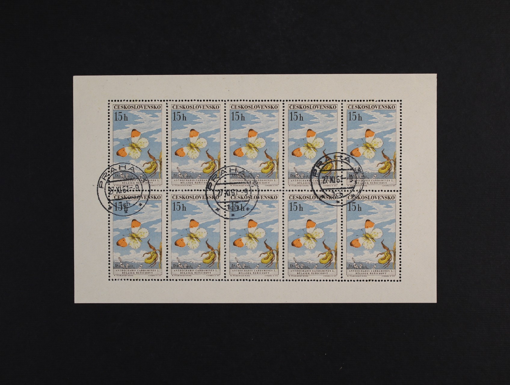 PL č. 1217 - PL 1225 - kompl. série motýli, 1217 deska F 2.1, 1218 deska B 1.3, 1219 deska B 1.1, 1220 deska B 1.1b, 1221 deska A 2.1, 122 deska D 2.1, 1223 deska A 1.1, 1224 deska A 1.1, 1225 deska B 1.3, zajímavá sestava