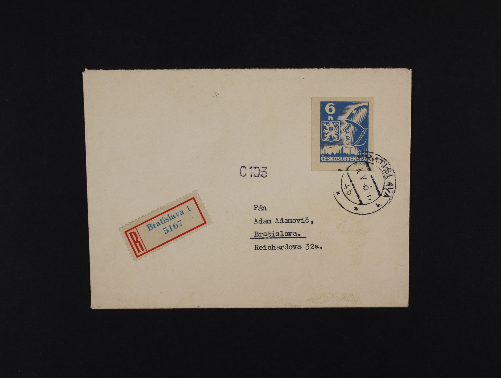 1309 R-dopis frank. zn. č. 356, pod. raz. BRATISLAVA 1 10.5.45, zajímavé 400