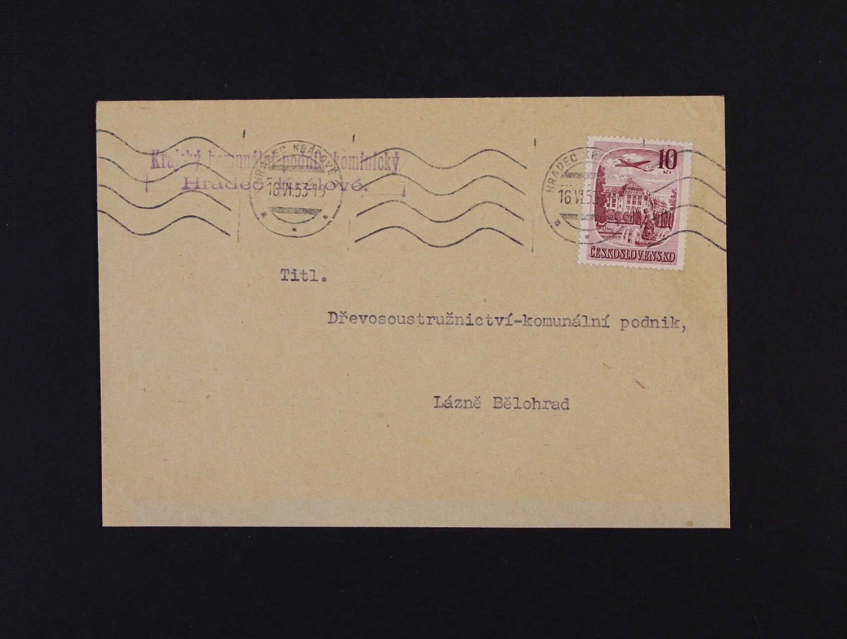 1314 Měnová reforma - tiskopis do Lázní Bělohrad frank. let. z. L č. 34, pod. stroj. raz. HRADEC KRÁLOVÉ 16.6.53 1000