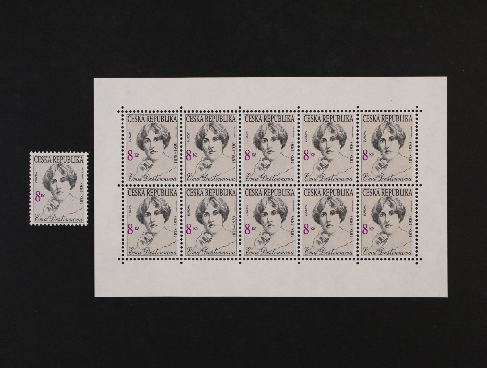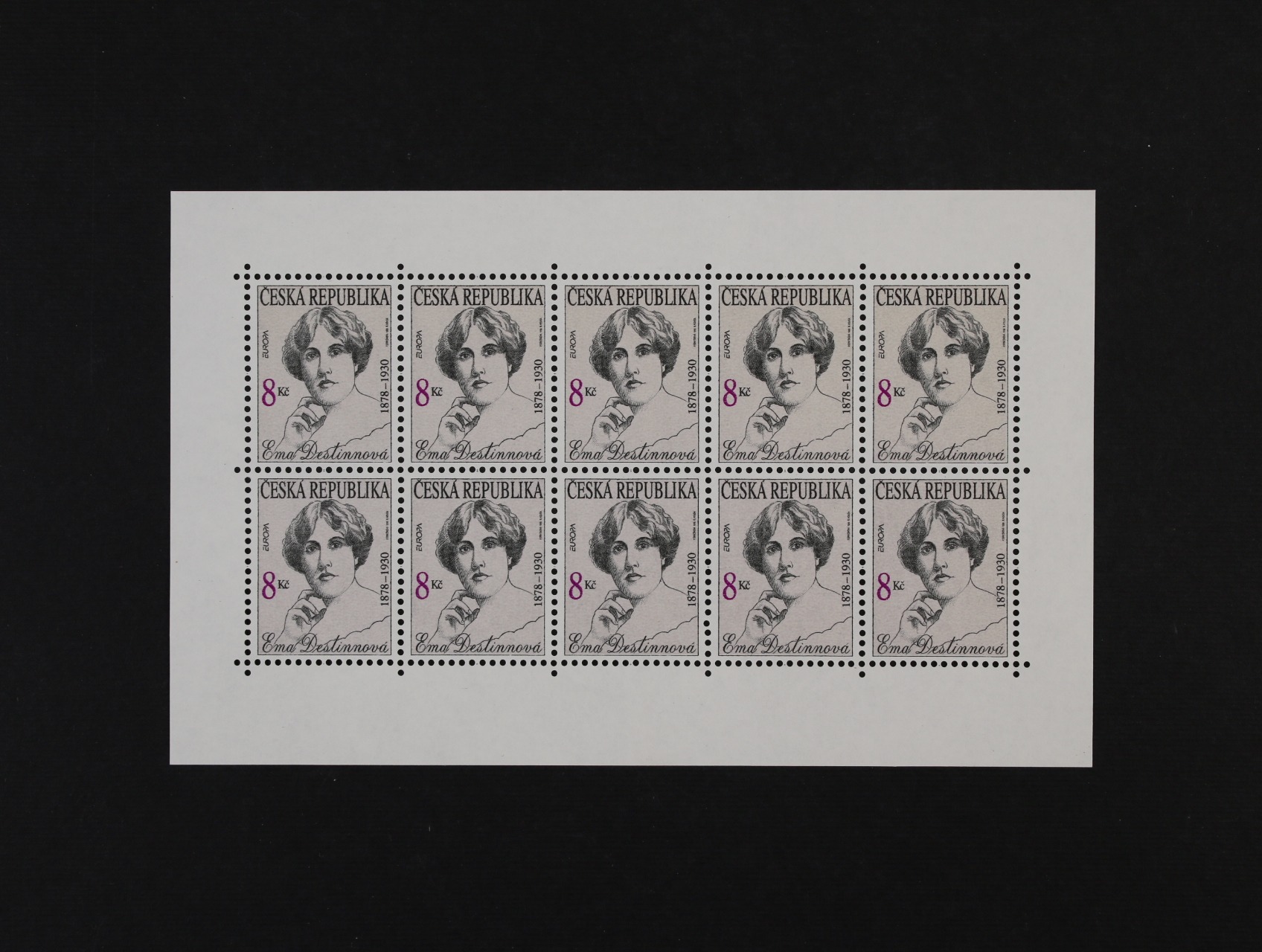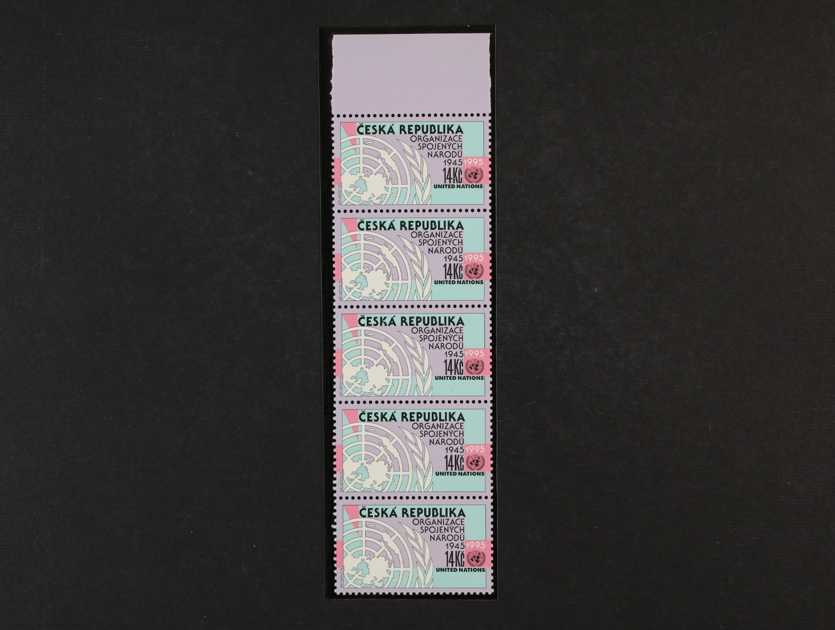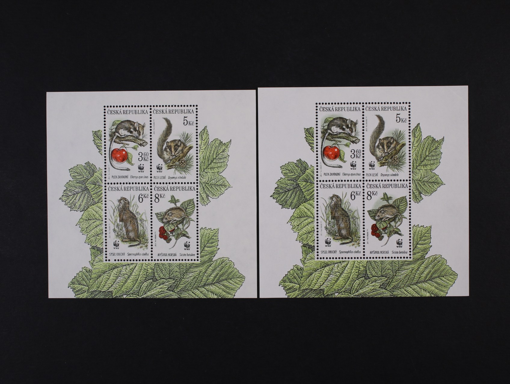 zn. č. A110 - 113 VV nedotisk šedozelené barvy v pozadí na všech známkách aršíku, přiložen kus bez VV k porovnání