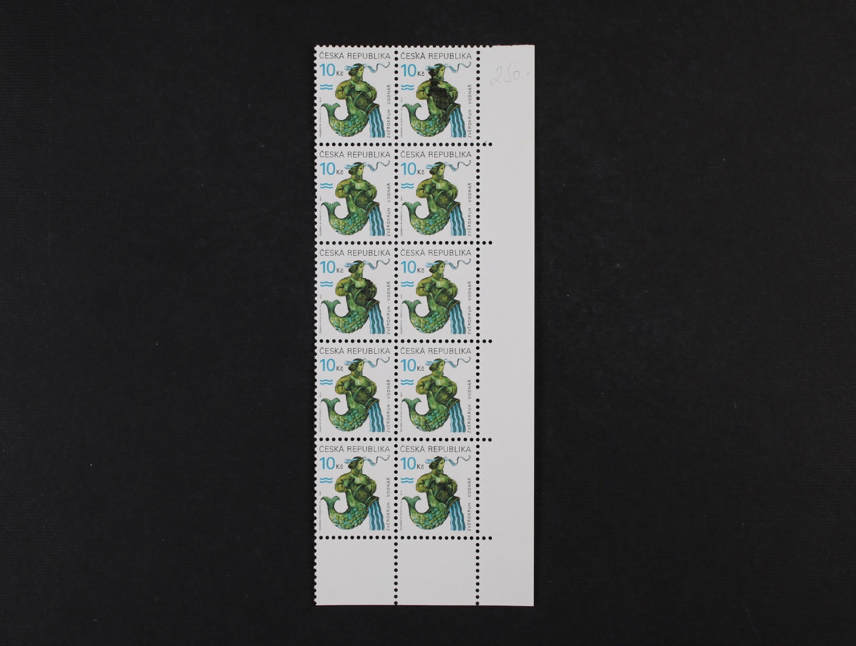 zn. č. 194 VV částečný nedotisk Kč a horní části nominál. číslice