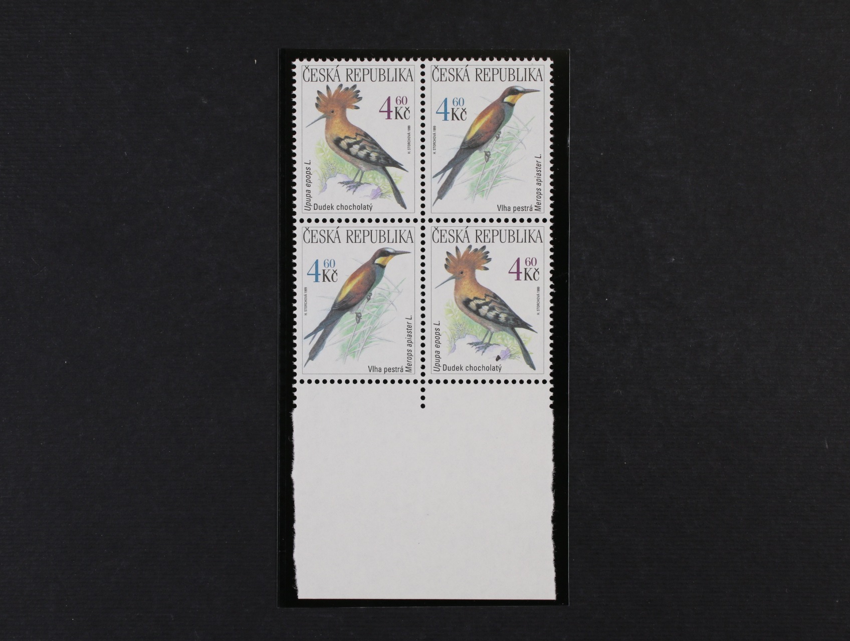 zn. č. 41a čtyřblok s horním okrajem a DV 13/2 - zářez na zádech 2. figurky shora, kat. cena cca 2400,-