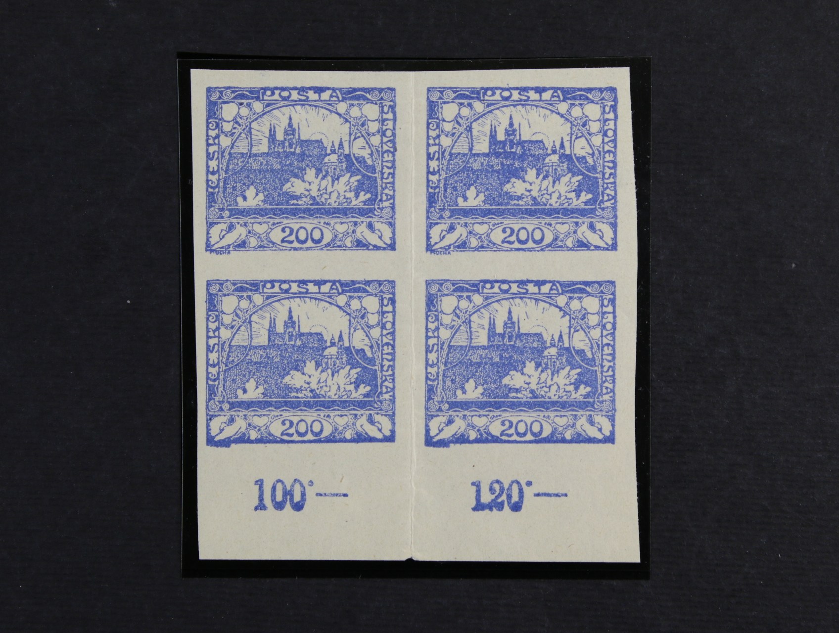 137 zn. č. 22 200h ultramarin ve čtyřbloku se spodním okrajem, uprostřed mezi zn. svisle přeloženo 1500