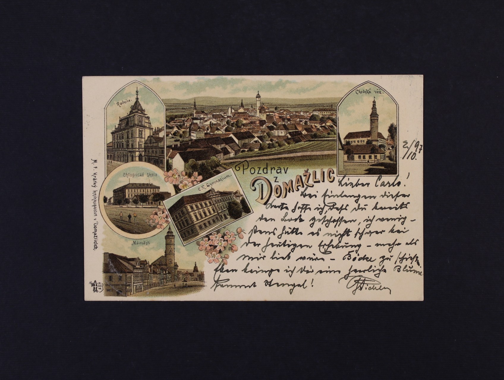 1403 Domažlice - bar. litograf. koláž použitá 1897, dobrá kvalita 300