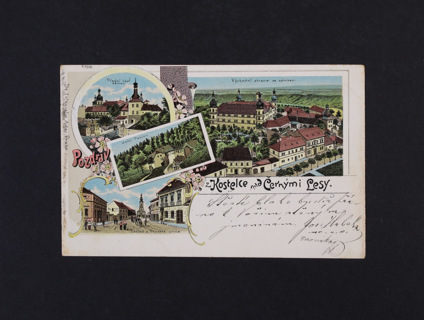 1407 Kostelec nad Černými lesy, okr. Praha - bar. litograf. koláž použitá 1901 200