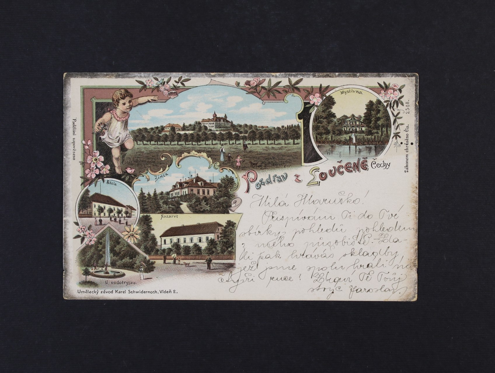 1408 Loučeň, okr. Nymburk - bar litograf. koláž, Schwidernoch Vídeň, použitá 1898 260