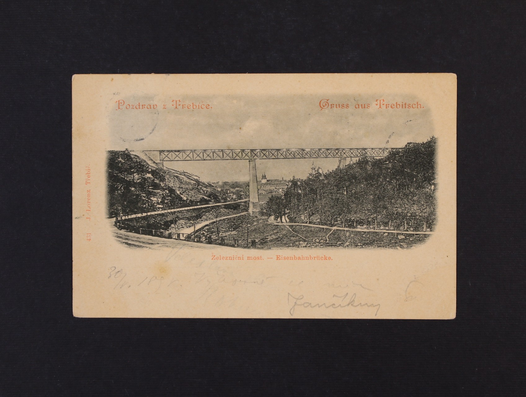 1415 Třebíč - železniční most - jednobar. litografie zaslaná do Brna 1998 300