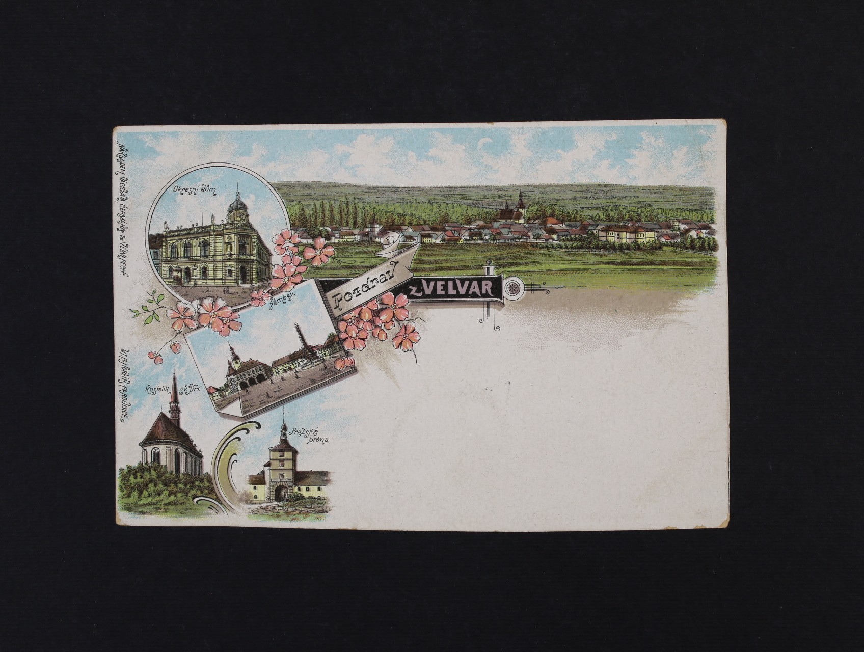 1416 Velvary, okr. Kladno - bar. litograf. koláž, nepoužitá 200