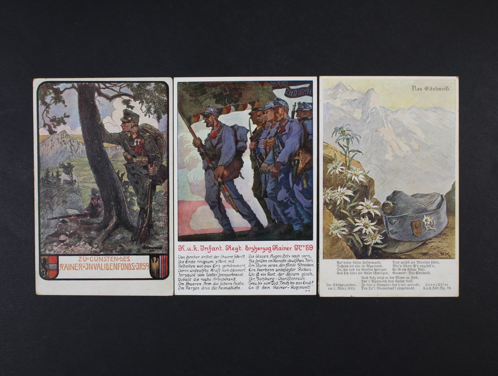 1444 Vojenské - 3 ks různých pohlednic K.u.K. Infanterie Regiment Nr. 59, použité i nepoužité 200