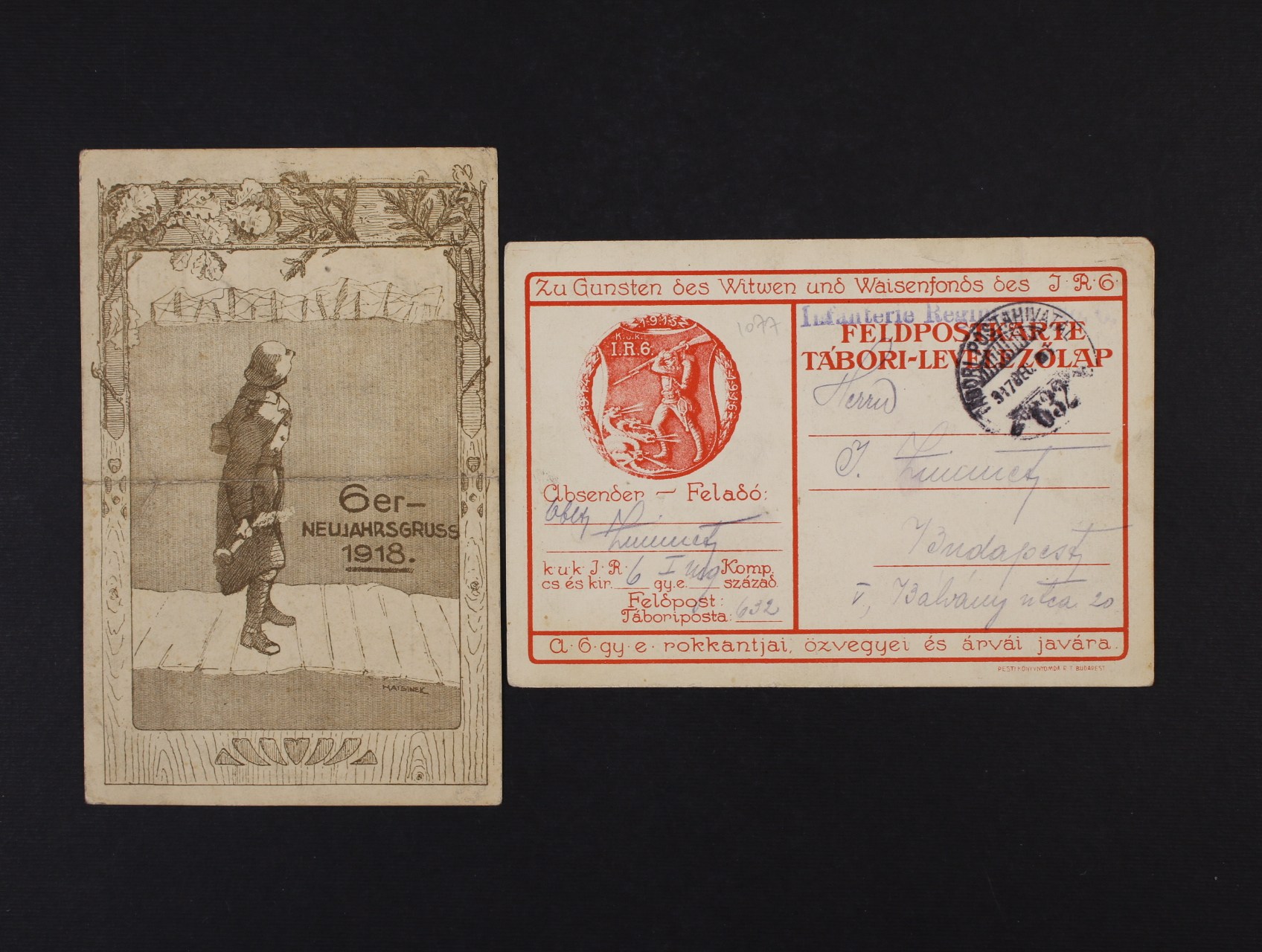 1449 Vojenské - dvě pohlednice Infanterie Regiment Nr. 6, požité 200