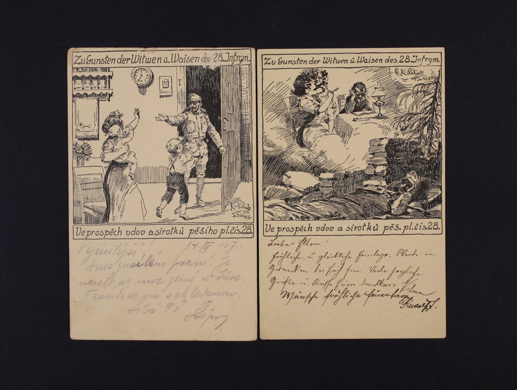 1452 Vojenské - dvě různé pohlednice K.u.K. Infanterie Regiment Nr. 28, použité, dobrá kvalita 200