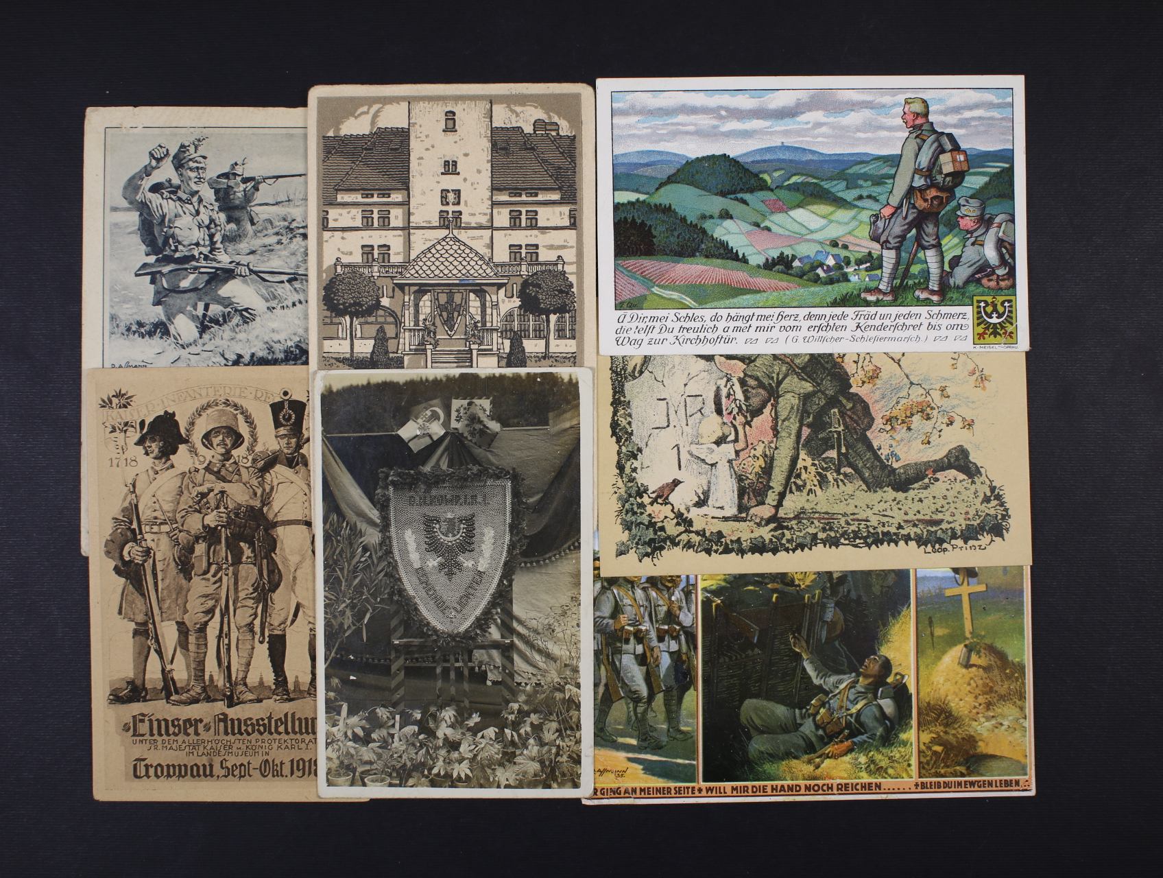 1460 Vojenské - sestava 10 ks různých pohlednic s motivem praporů polních myslivců, použité i nepoužité 500