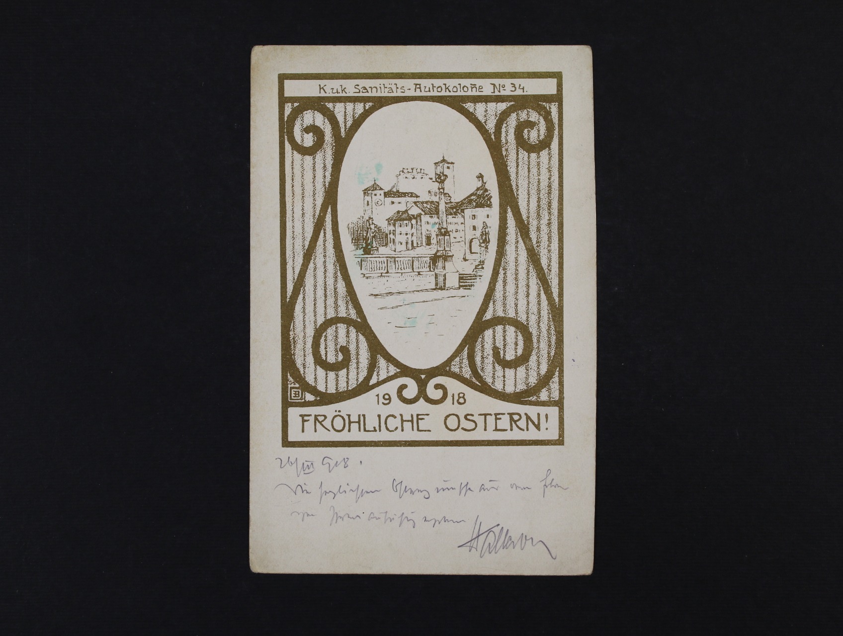1454 Vojenské - jednobar. koláž K.u.K. Sanitäts Autokolone No. 34, použitá 1918, dobrá kvalita 200