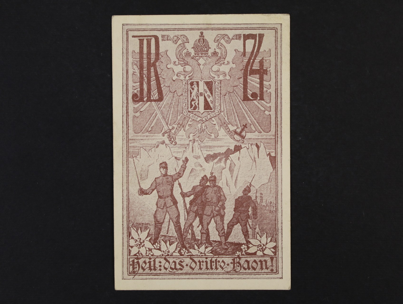 1456 Vojenské - jednobar. pohlednice s motivem K.u.K. Infanterie Regiment Nr. 74, použitá 200